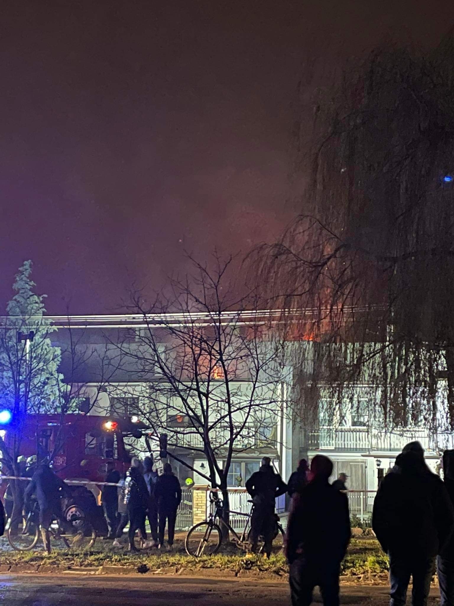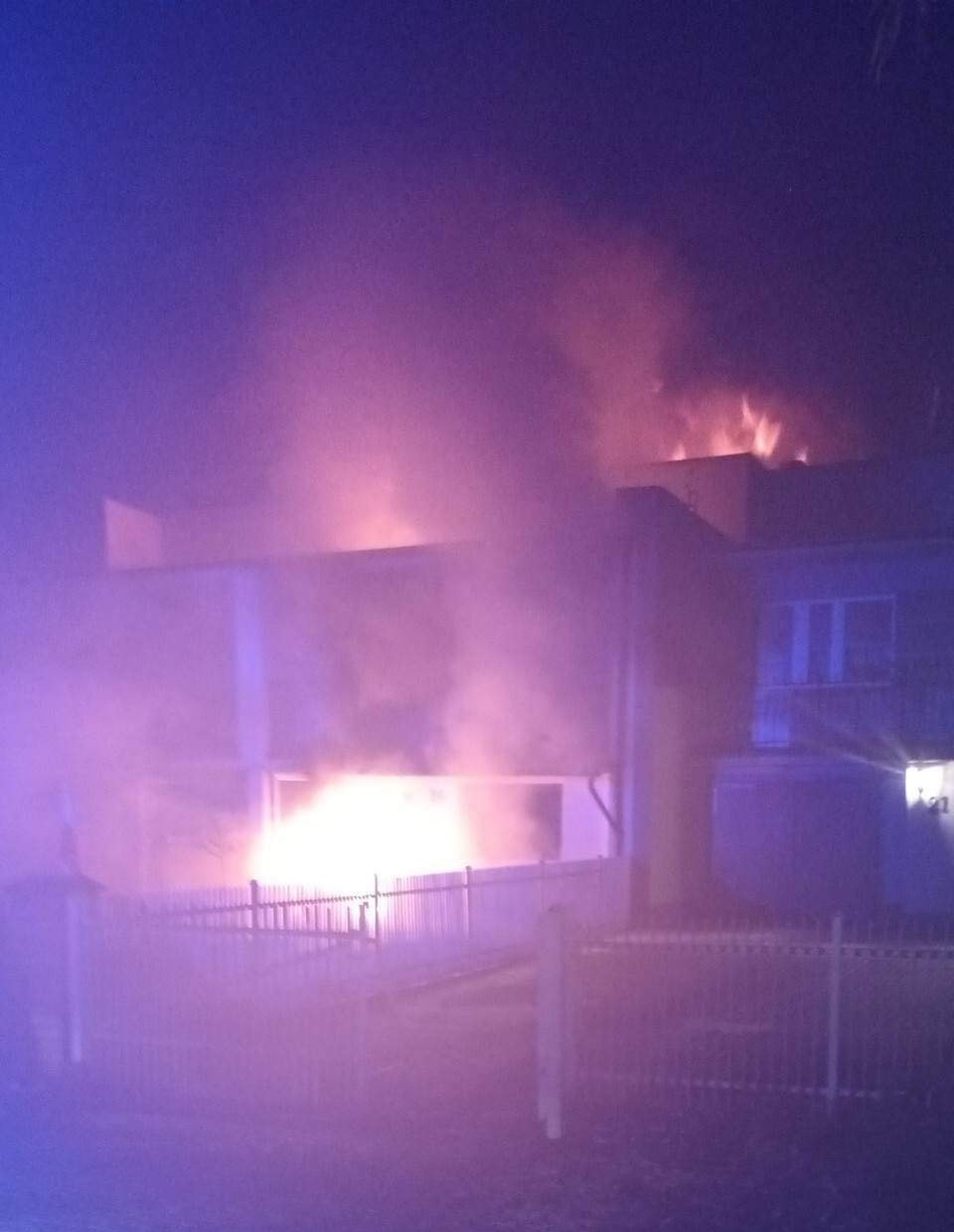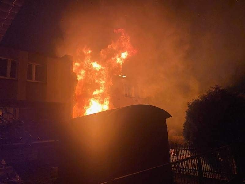 Po dojeździe na miejsce pierwszego zastępu straży pożarnej zastano mieszkanie w zabudowie szeregowej, które całe było objęte ogniem, sąsiedzi opuścili swoje mieszkania jeszcze przed przybyciem straży.