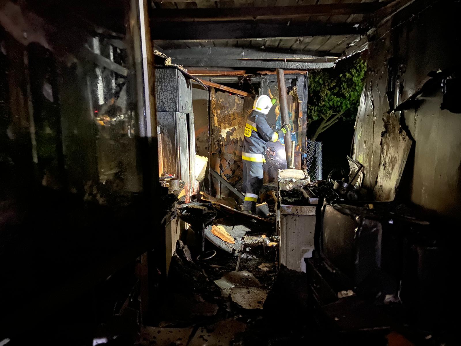 Natychmiastowe działania straży pożarnej polegały na zabezpieczeniu miejsca zdarzenia, podaniu jednego prądu wody na palące się wnętrze baraku oraz zlokalizowaniu i wyniesieniu w bezpieczne miejsce butli gazowej, która została poddana procesowi schładzania.