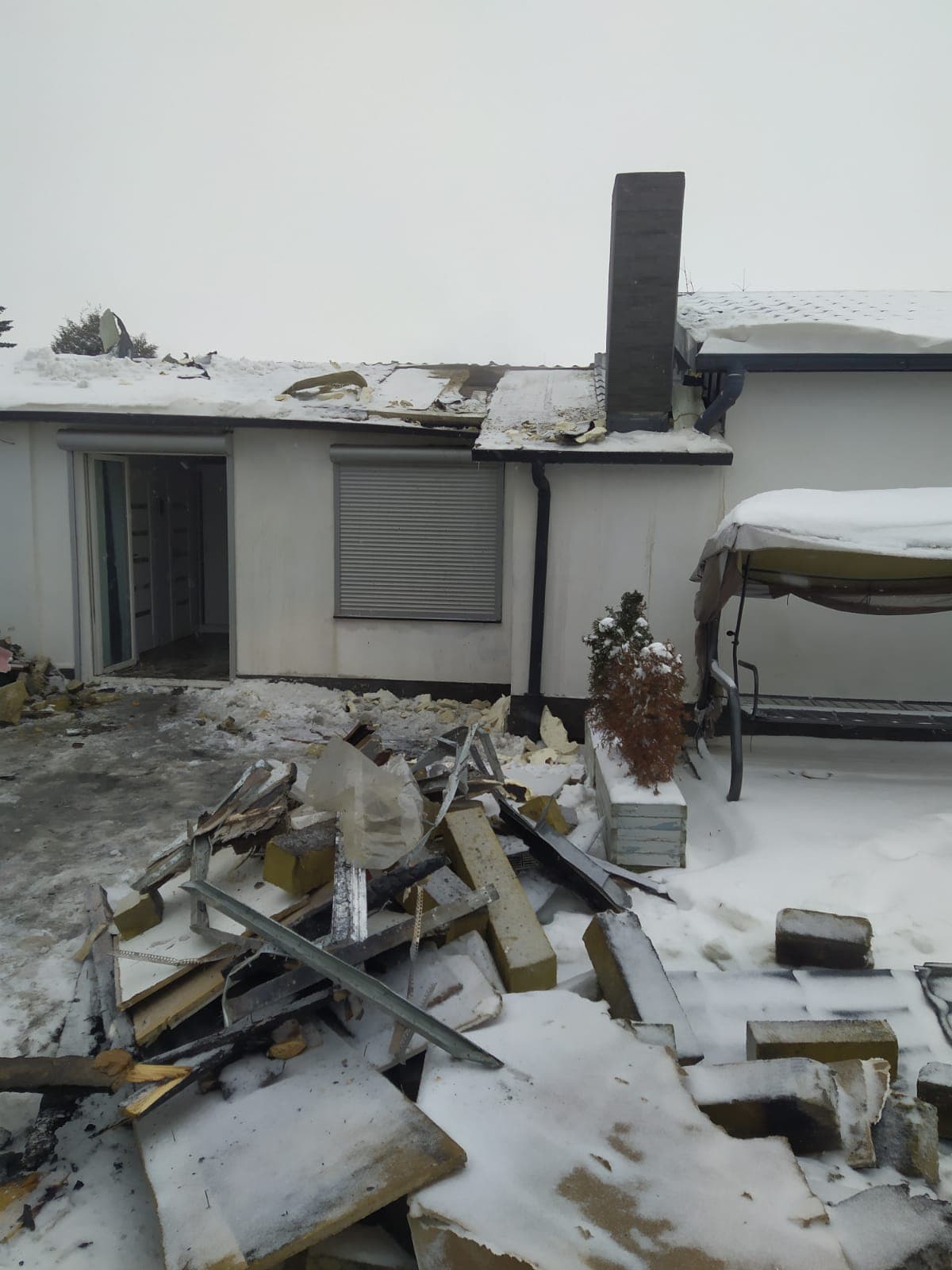 Kilka minut później o 13:48 zastępy straży pożarnej zostały predysponowane do pożaru domu jednorodzinnego w miejscowości Rożnowo. Działania ratowniczo-gaśnicze polegały na zabezpieczeniu miejsca zdarzenia, podaniu dwóch prądów wody na palące się drewniane elementy konstrukcji dachu, a także wykonaniu otworów rewizyjnych w połaci dachu. Po zlokalizowaniu źródła ognia przystąpiono do prac rozbiórkowych w celu dogaszenia jego zarzewi oraz oddymieniu pomieszczeń. Przypuszczalną przyczyna pożaru był nieszczelny przewód kominowy. W działaniach udział brały zastępy JRG Oborniki, OSP Rożnowo, OSP Parkowo i OSP Rogoźno.