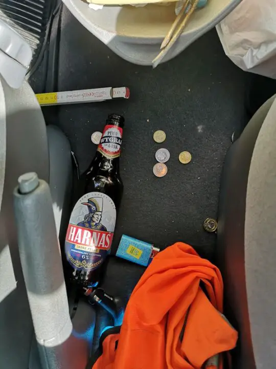 Kiedy policjanci przyjechali na miejsce zastali kompletnie pijanego mężczyznę siedzącego na przydrożnym trawniku i którego „pilnowali” świadkowie nieodpowiedzialnej jazdy. Po przebadaniu stanu trzeźwości kierowcy okazało się, że miał w organizmie ponad 4 promile alkoholu. Policjanci mieli trudności, żeby wprowadzić go do radiowozu. W citroenie znajdowały się puste butelki po piwie oraz wypełnione alkoholem.