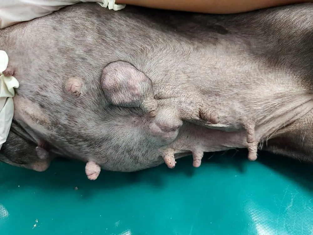 To musiało być dawno, bo nawet po bliźnie nie został ślad, za to poniżej szwów, znajdujemy kolejny guz.
