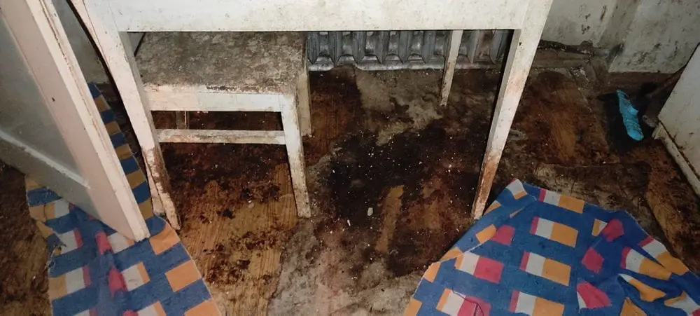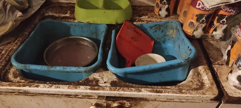 Brak jakiejkolwiek dezynfekcji, porozrzucane kości, tania marketowa karma lub rzucone nieświeże mięso. I stół do przygotowywania posiłków, a na nim jedzenie i fekalia razem.