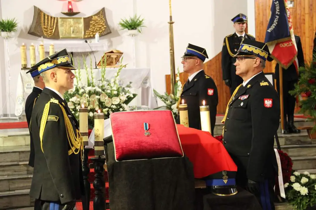 Oddając hołd zmarłemu koledze, strażacy wystawili czteroosobowy posterunek honorowy kolejno w składzie: