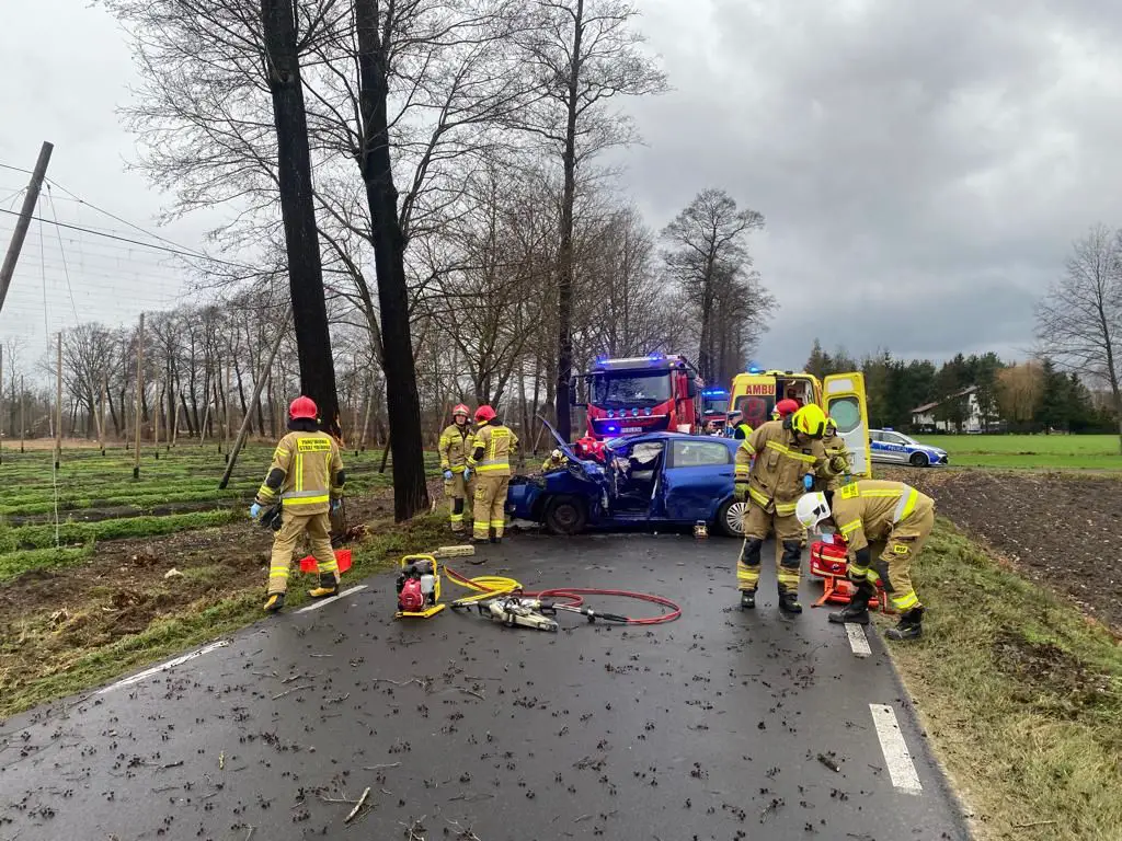 Wszystko wydarzyło się 26 grudnia przed godziną 12:00 na trasie Boruja Kościelna – Kąkolewo. Według zgłoszenia wynikało, że samochód osobowy uderzył w drzewo oraz o jednej osobie uwięzionej w pojeździe.