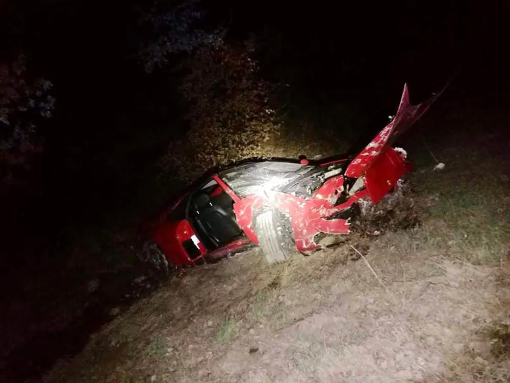 Kierujący ferrari 35-latek z powiatu myślenickiego jadąc za szybko stracił panowanie nad pojazdem i wypadł z drogi. Uderzył w przydrożną kapliczkę, a następnie spadł ze skarpy. Kierowca i pasażer nie odnieśli poważnych obrażeń, czego nie można powiedzieć o samochodzie. Warte fortunę ferrari zostało doszczętnie zniszczone.