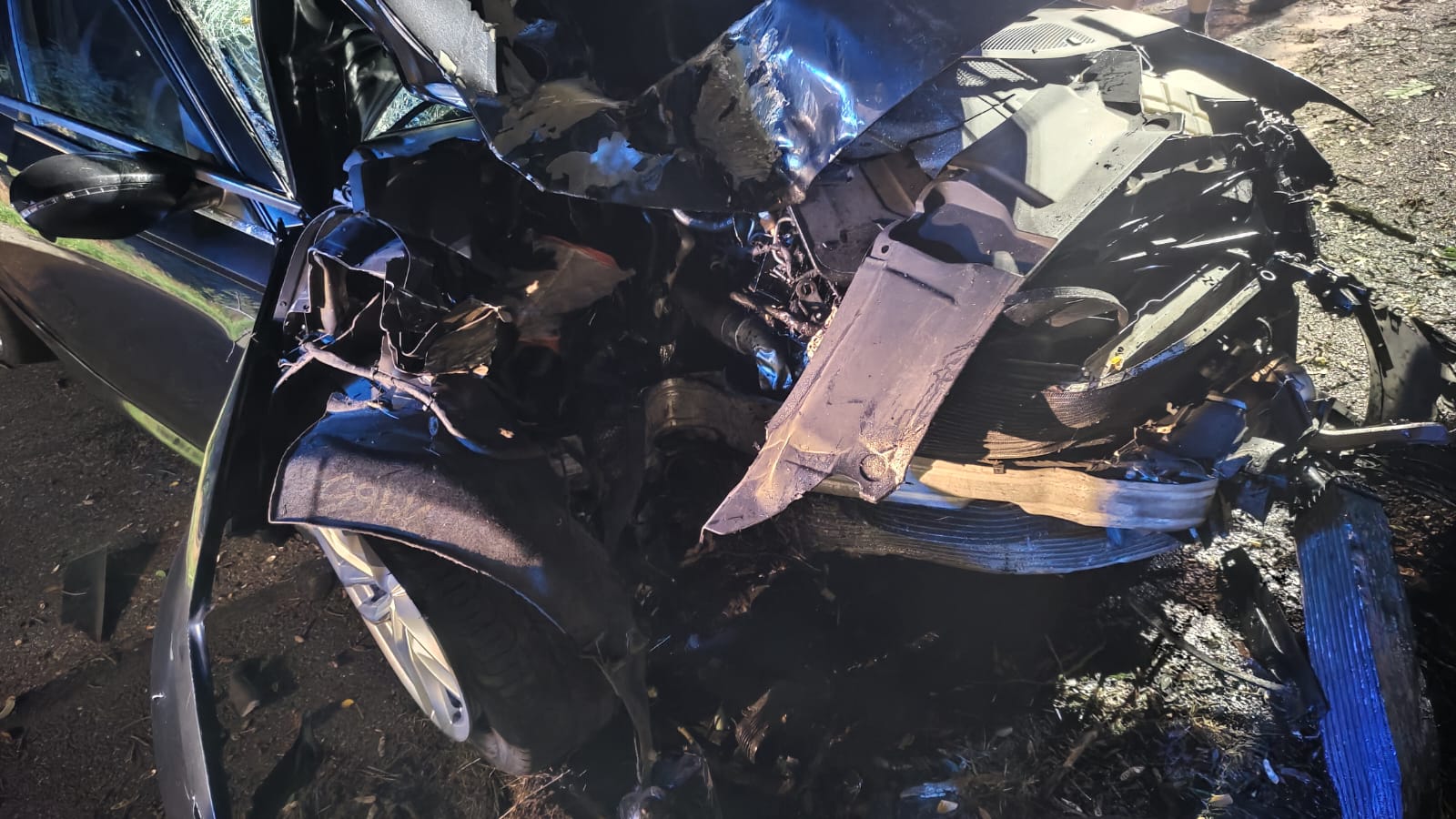 Po dojeździe na miejsce zdarzenia strażacy zastali samochód osobowy, który uderzył w drzewo. Kierujący opuścił pojazd przed przybyciem straży pożarnej i znajdował się w pobliżu pod opieką świadków zdarzenia.