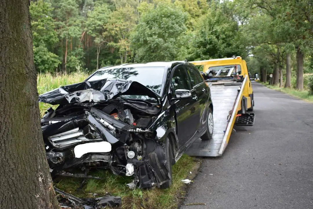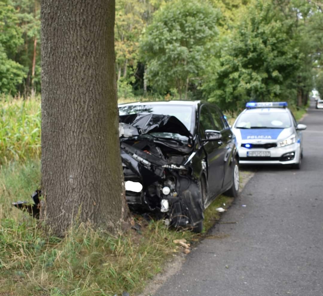 43-letnia kobieta z która podróżowała samochodem osobowym marki Mercedes z niewyjaśnionych przyczyn uderzyła w przydrożne drzewo.