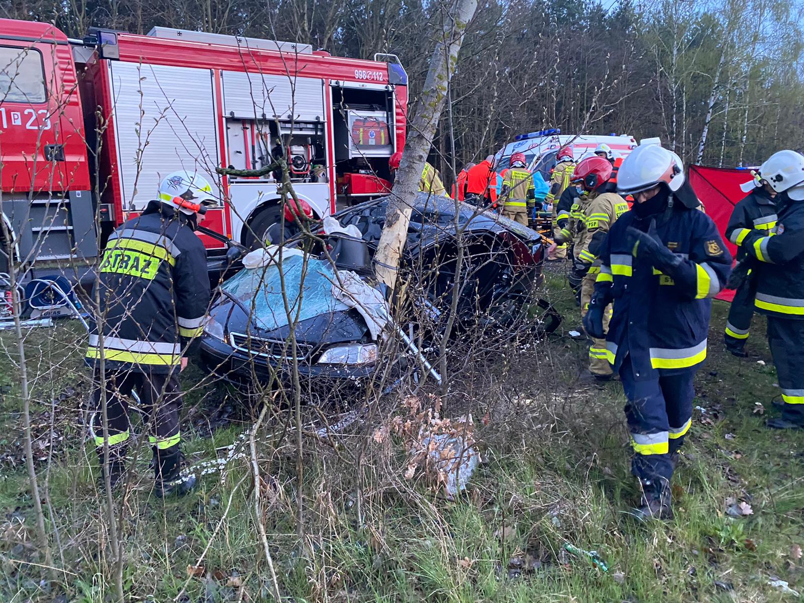 Równolegle do prowadzonych działań medycznych strażacy odłączyli akumulator w pojeździe oraz posypali wyciekłe płyny eksploatacyjne sorbentem. Podczas prowadzonych działań ruch na drodze wojewódzkiej został wstrzymany. Aby wydobyć wrak pojazdu niezbędne okazało się wycięcie przydrożnego drzewa, w które uderzył pojazd.