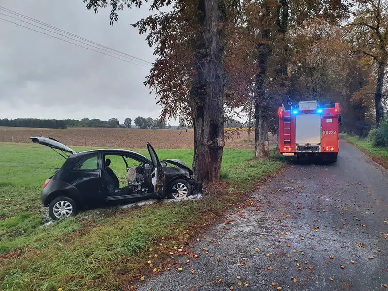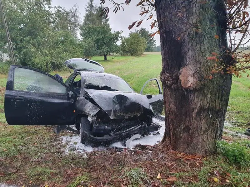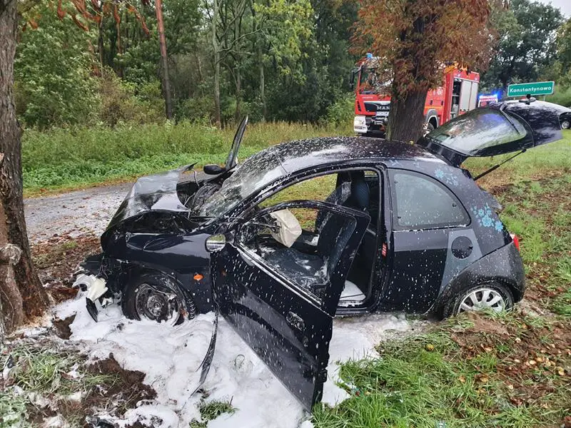 W sobotę 27 września, w Konstantynowie, około godz. 16:52 samochód osobowy marki Ford KA, którym podróżowały dwie osoby, zjechał z drogi, uderzył w drzewo i po chwili zaczął się palić.