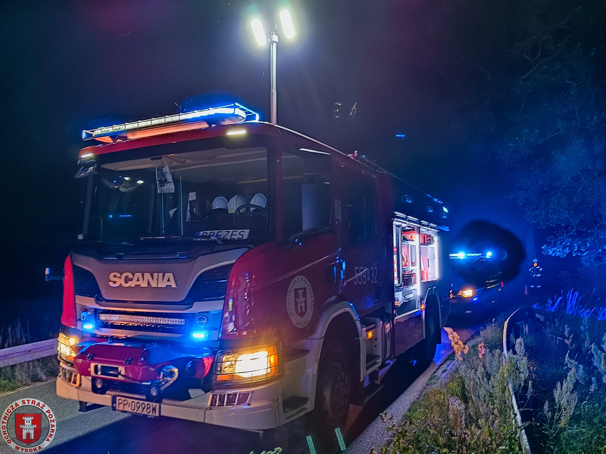 Po przyjeździe na miejsce zdarzenia zastępów straży pożarnej stwierdzono, że na drodze Wysoka Mała – Grabówno na poboczu drogi w rowie znajduje się samochód osobowy, który uderzył w drzewo. Pojazdem podróżowała jedna osoba.
