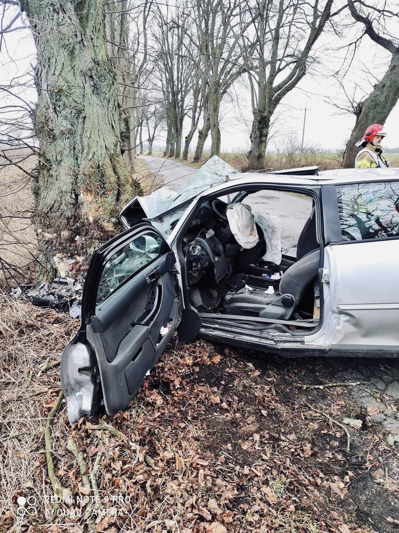 Po dotarciu na miejsce zastępy straży zastały uwięzionego mężczyznę w środku roztrzaskanego samochodu. Strażacy natychmiast przystąpili do działań, które polegały na zabezpieczeniu terenu działań oraz wykonaniu dostępu do poszkodowanego mężczyzny przy pomocy narzędzi hydraulicznych. Zespół Ratownictwa Medycznego po przybyciu na miejsce zadecydował o transporcie rannego kierowcy do szpitala.