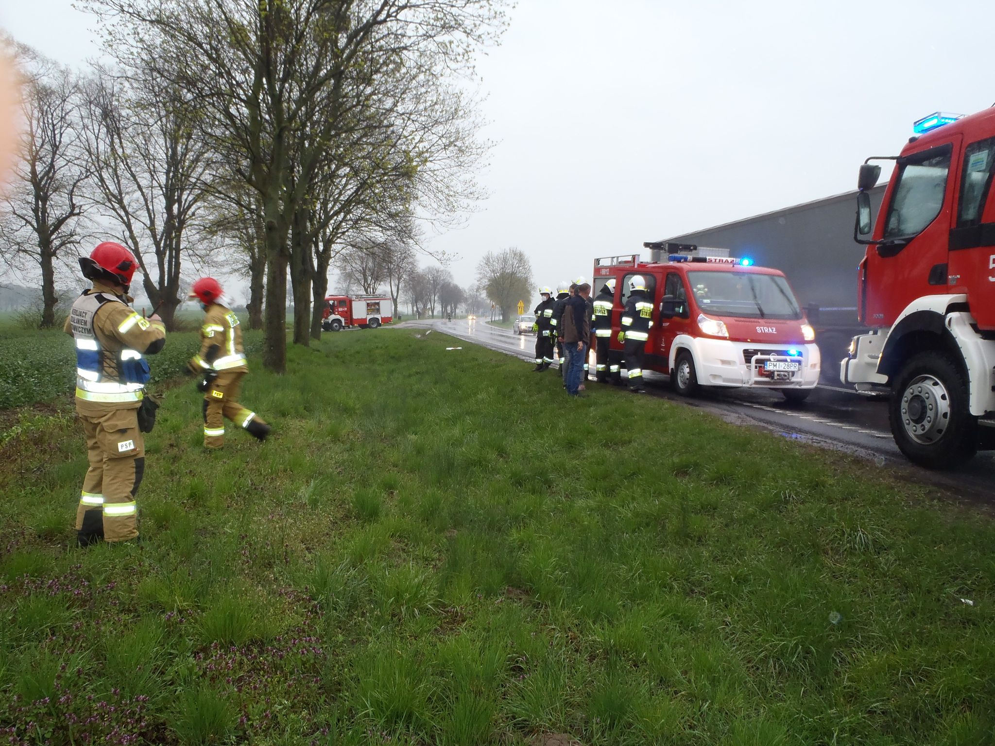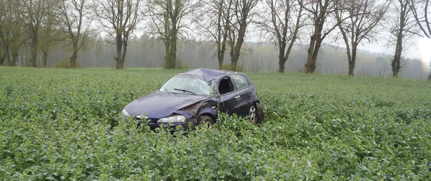 Na miejsce zadysponowano trzy zastępy zawodowej straży pożarnej z JRG w Międzychodzie oraz druhów OSP Kwilcz w sile dwóch zastępów. Po przybyciu pierwszych jednostek we wskazane miejsce zastano rozbity samochód osobowy w polu. Osoby podróżujące wydostały się z pojazdu o własnych siłach przed przybyciem służb.