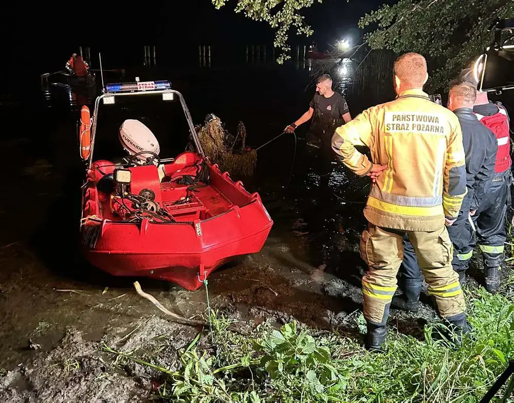 Strażacy zaczęli poszukiwania zatopionego samochodu. – Dowiedzieliśmy się, że jedna osoba wyszła z samochodu i jest cała i zdrowa – mówi st. kpt. Arkadiusz Kaniak, rzecznik lubuskiej straży pożarnej. Strażacy cały czas szukali zatopionej mazdy.