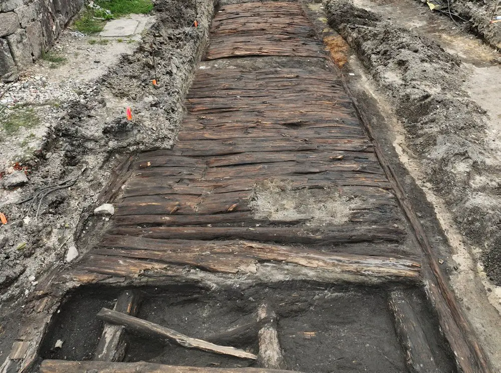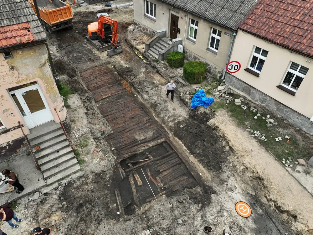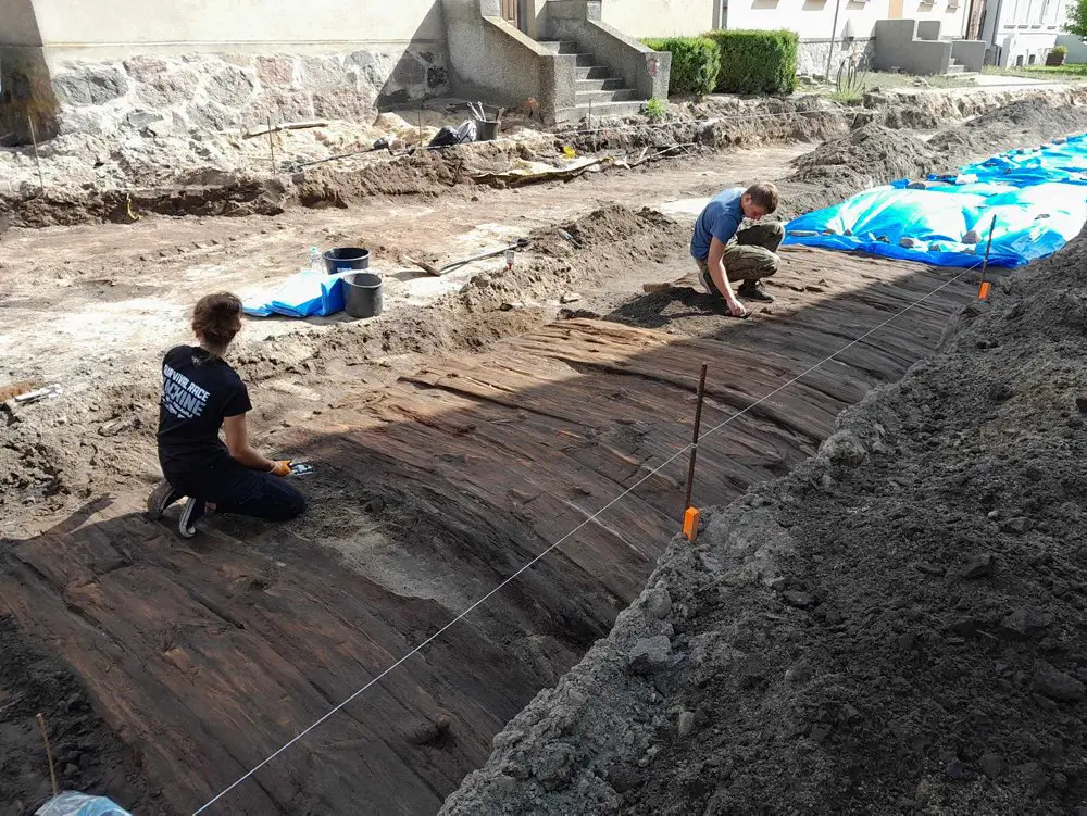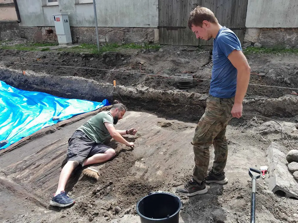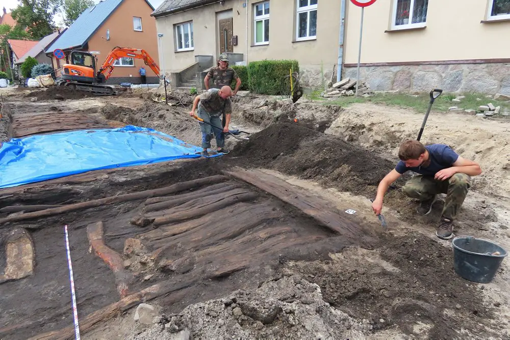 W poniedziałek, 31 lipca, w trakcie prac ziemnych prowadzonych na rynku w Łeknie, pracownicy firmy budowlanej natrafili na pozostałości zagadkowej konstrukcji drewnianej. W wyniku podjętych badań archeologicznych odsłonięto do tej pory i zadokumentowano 25-metrowy odcinek dawnej drewnianej ulicy.