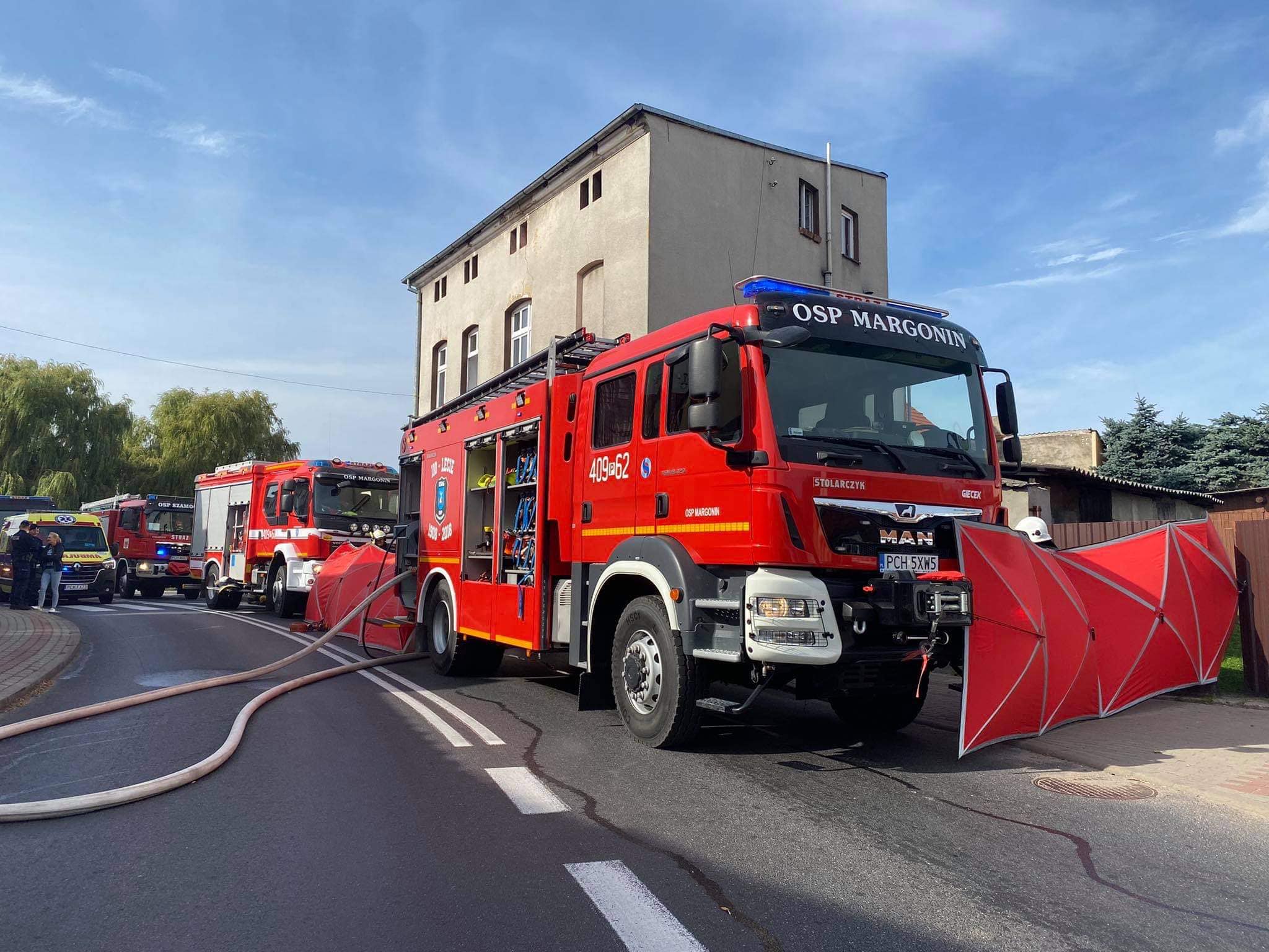 Po przybyciu na miejsce zdarzenia pierwszego zastępu straży pożarnej z OSP Margonin stwierdzono, że z klatki schodowej wydobywa się dym, a z informacji od zgłaszającej pożar wynikało, że w mieszkaniu na parterze przebywa jedna osoba.