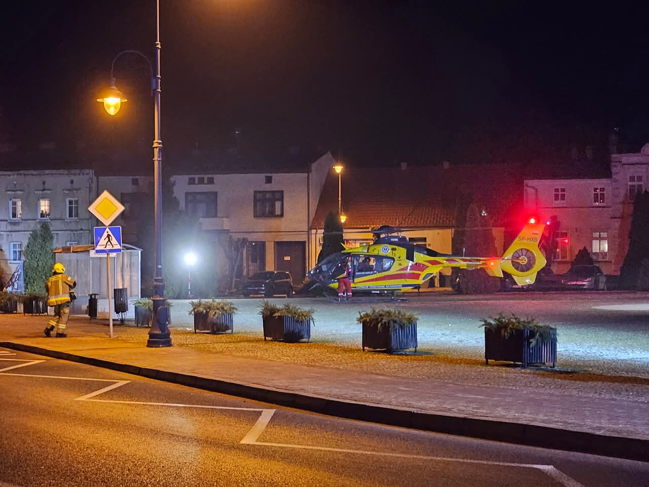 Zabezpieczono również lądowisko dla śmigłowca Lotniczego Pogotowie Ratunkowego, które zostało zadysponowane do zdarzenia – załoga nie podejmowała jednak działań ze względu na zgon poszkodowanego, dlatego po chwili maszyna odleciała do swojej bazy. Nadpalone elementy wyposażenia zostały wyniesione przez strażaków na zewnątrz budynku i dogaszone wodą. Na czas prowadzonych działań ulica Dworcowa od Rynku do Urzędu Gminy została całkowicie wyłączona z ruchu.