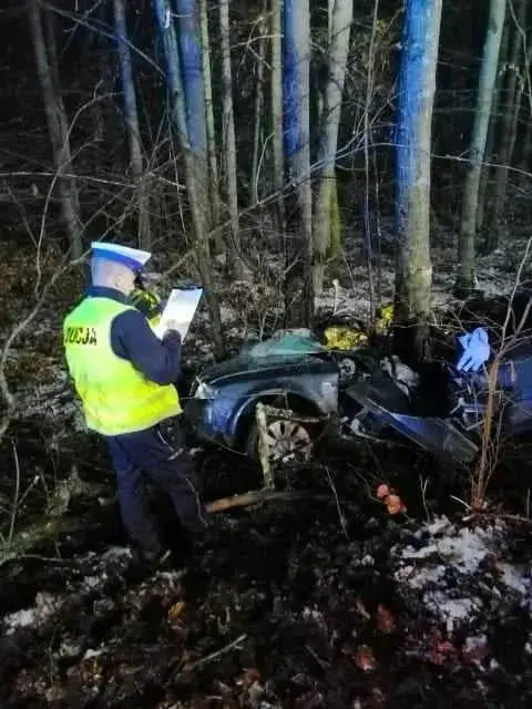 Samochód marki Audi A 4 uderzył w drzewo. Kierująca i pasażer zginęli miejscu. Drugi, 12-letni pasażer z obrażeniami trafił do szpitala. Funkcjonariusze wyjaśniają okoliczności tego tragicznego w skutkach wypadku drogowego.