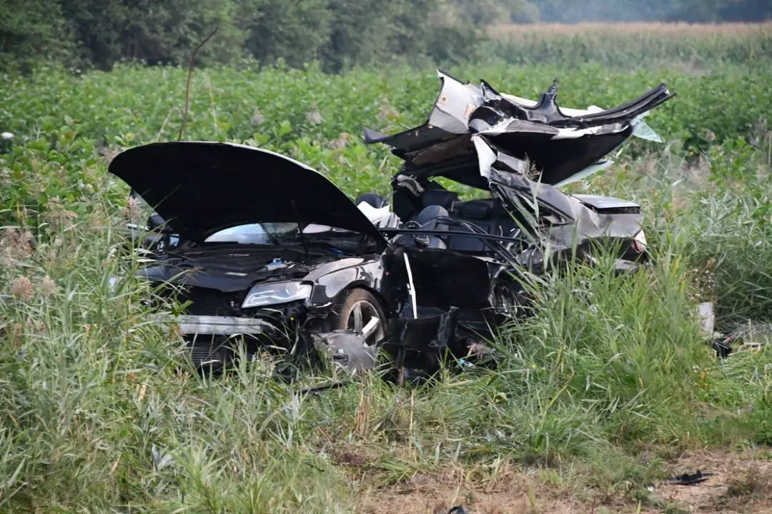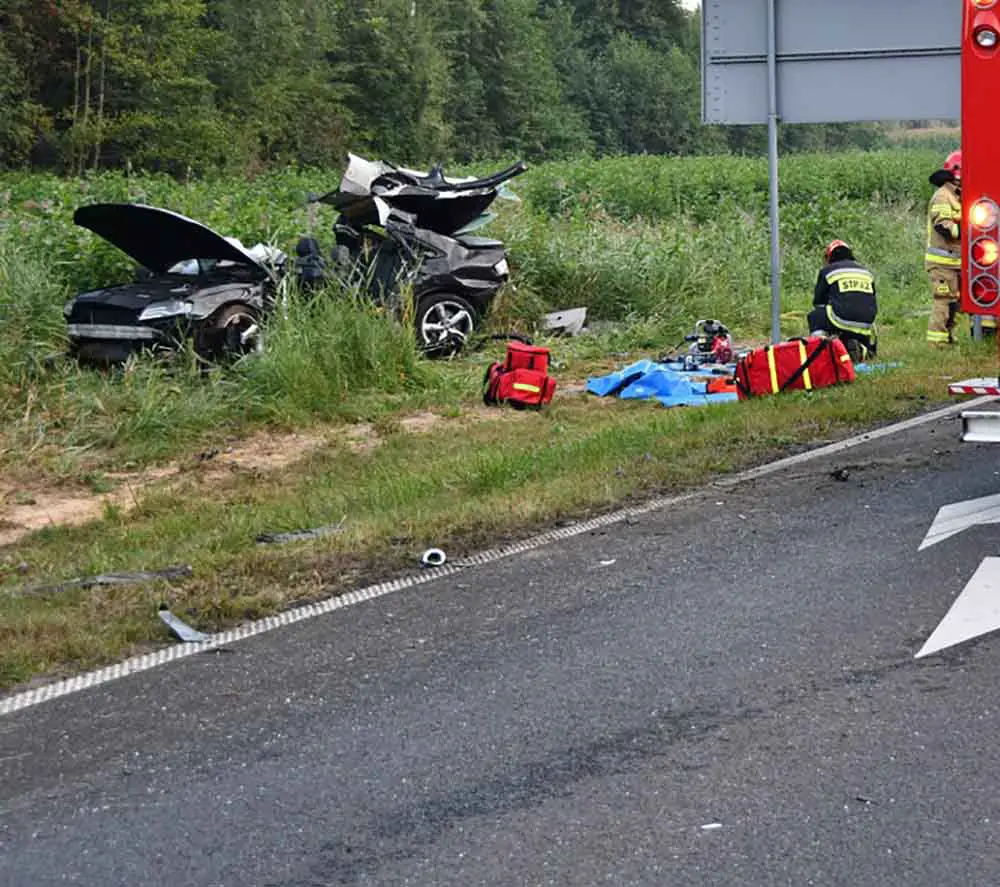 Bus zderzył się czołowo z audi. Siła zderzenia była ogromna. Strażacy musieli rozcinać karoserię zmiażdżonego audi. Na miejscu pracują służby ratunkowe. Niestety w wypadku zginęła jedna osoba. Droga w miejscu zdarzenia jest zablokowana.