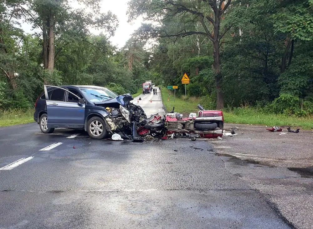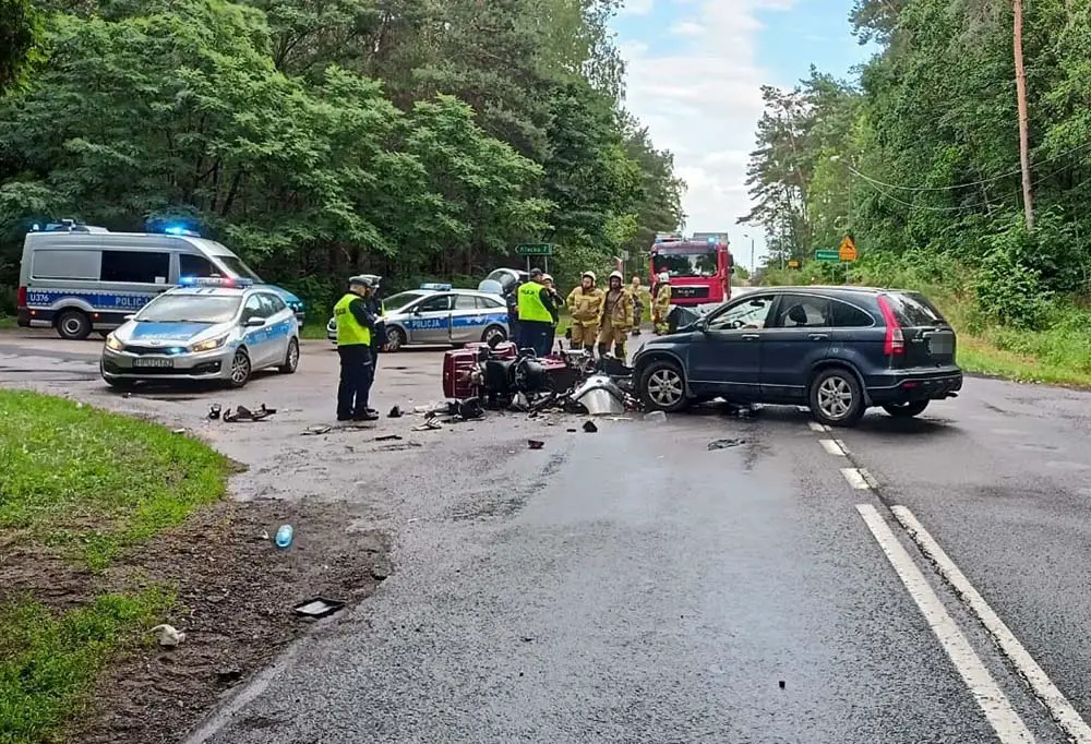 Do wypadku doszło w poniedziałek, 11 lipca, na drodze w Waliszewie. Motocyklista zderzył się z hondą. Ciężko ranny mężczyzna zmarł w szpitalu.
