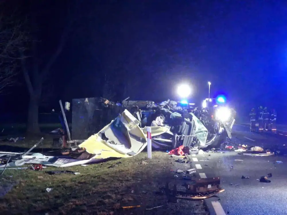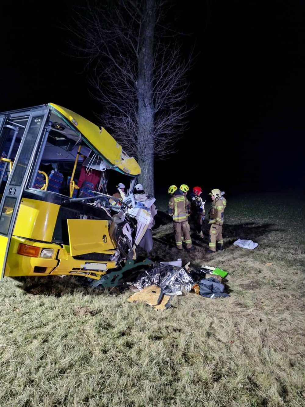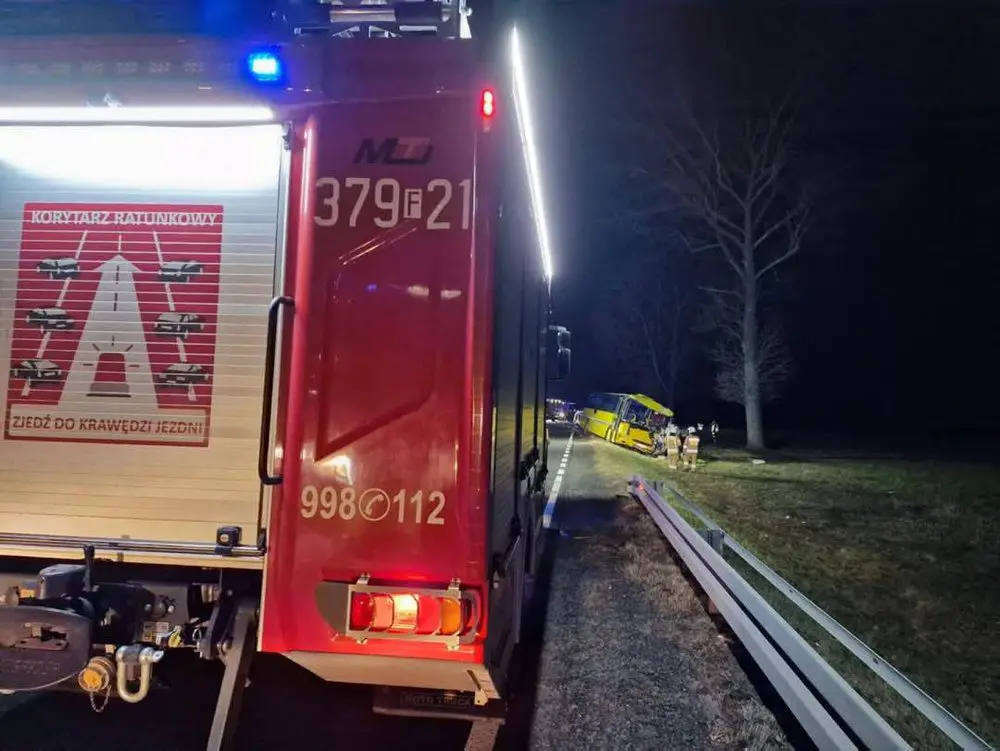 Na poboczu stał rozbity autobus. Na szczęście był pusty. Kierowca autobusu został ciężko ranny. Strażacy wraz z ratownikami z pogotowia zajęli się rannym kierowcą. Nieco dalej leżały szczątki rozerwanego samochodu, który przed zdarzeniem… był busem. Niestety kierujący busem nie przeżył zderzenia z autobusem.