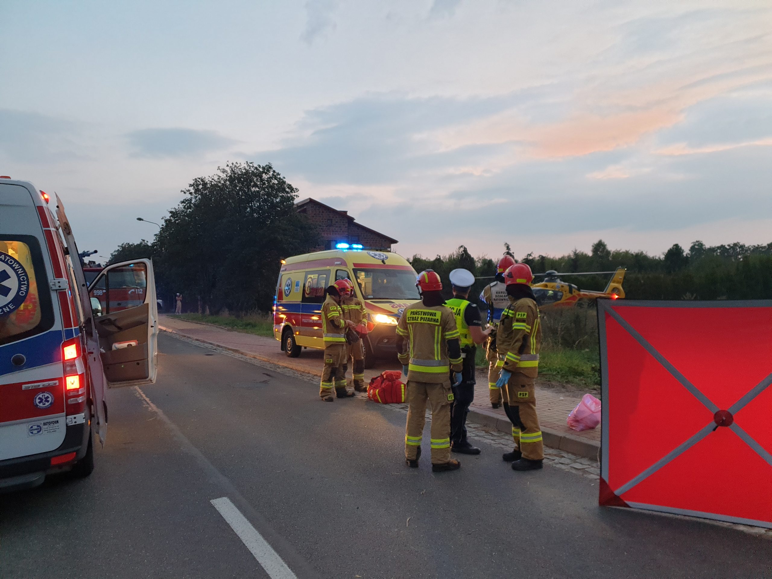 Kolejne trzy osoby zostały przetransportowane do szpitala dwoma karetkami i śmigłowcem LPR, ostatniej osobie nie udało się przywrócić czynności życiowych i lekarz stwierdził zgon. Dalsze działania Strażaków polegały na zabezpieczeniu miejsca zdarzenia i kierowaniu ruchem, do czasu zakończenia prac prowadzonych przez Policję oraz prokuratora.