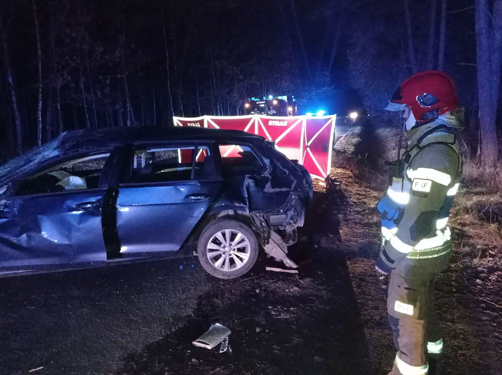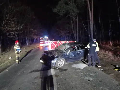 dachowaniu) – jedna osoba jest poszkodowana – nieprzytomna bez funkcji życiowych. Droga powiatowa jest całkowicie zablokowana.