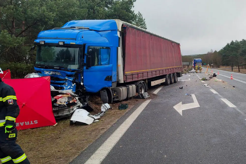 Siła zderzenia była ogromna. Renault zostało zmiażdżone. W wyniku poniesionych obrażeń kierowca renault poniósł śmierć na miejscu. Kierowca pojazdu ciężarowego nie odniósł żądnych obrażeń.