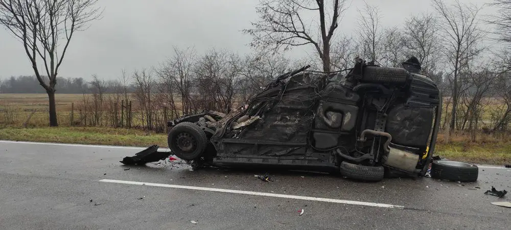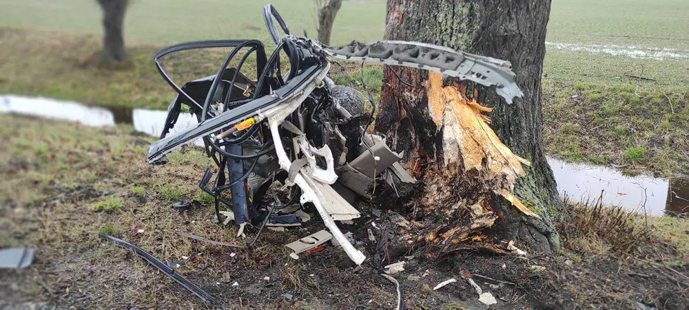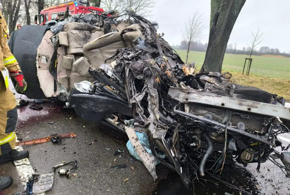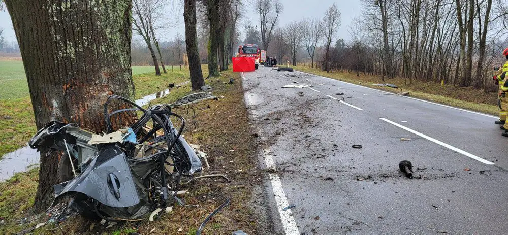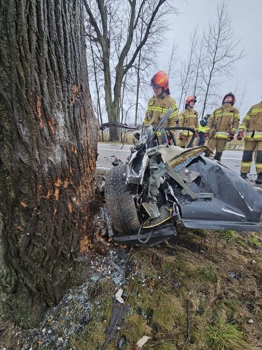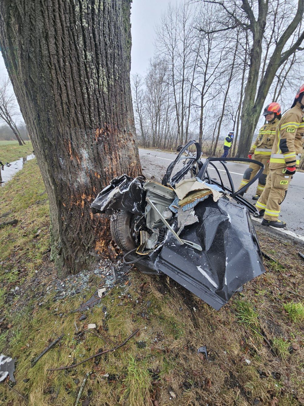 Do śmiertelnego wypadku doszło w sobotę, 1 marca, na DK54. Toyota uderzyła w drzewo z taką siłą, że została rozerwana. Kierowca zginął na miejscu