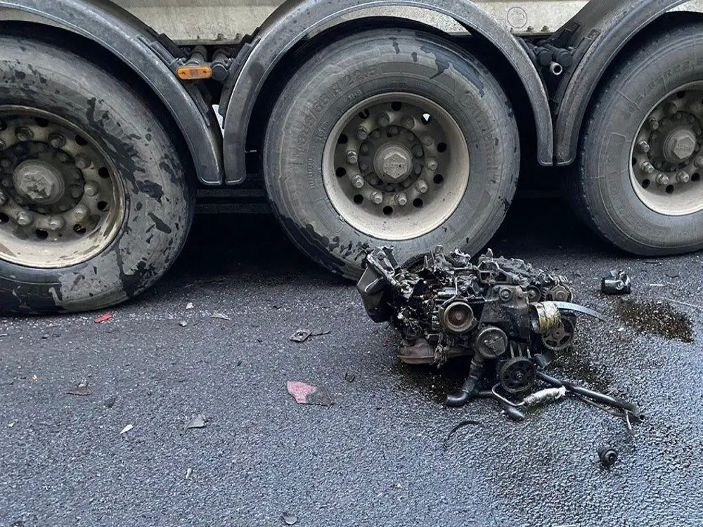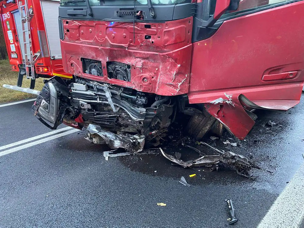 Tam zderzył się czołowo z samochodem ciężarowym. Siła zderzenia była potężna. Osobówka została zmiażdżona i rozerwana jak puszka.