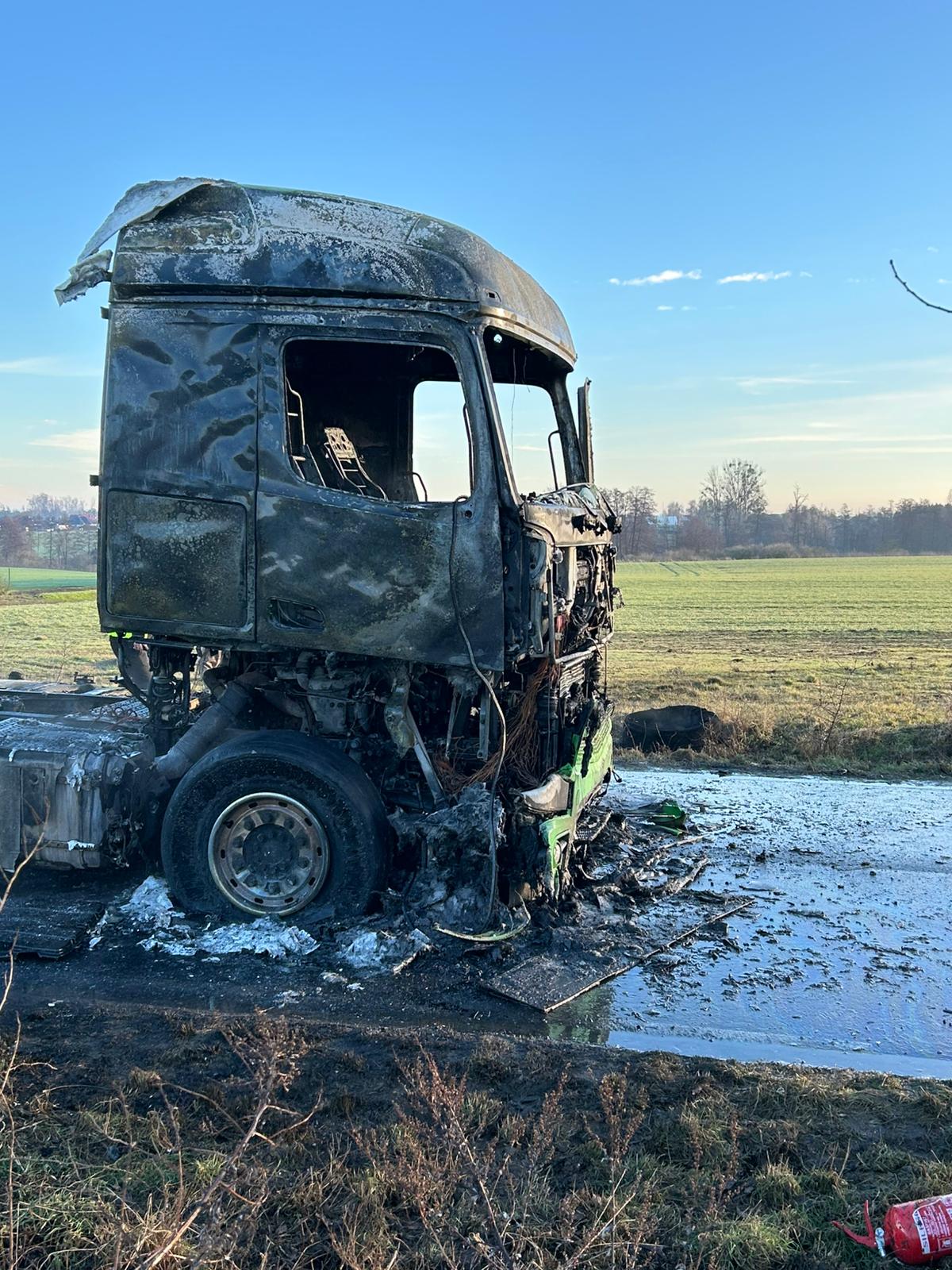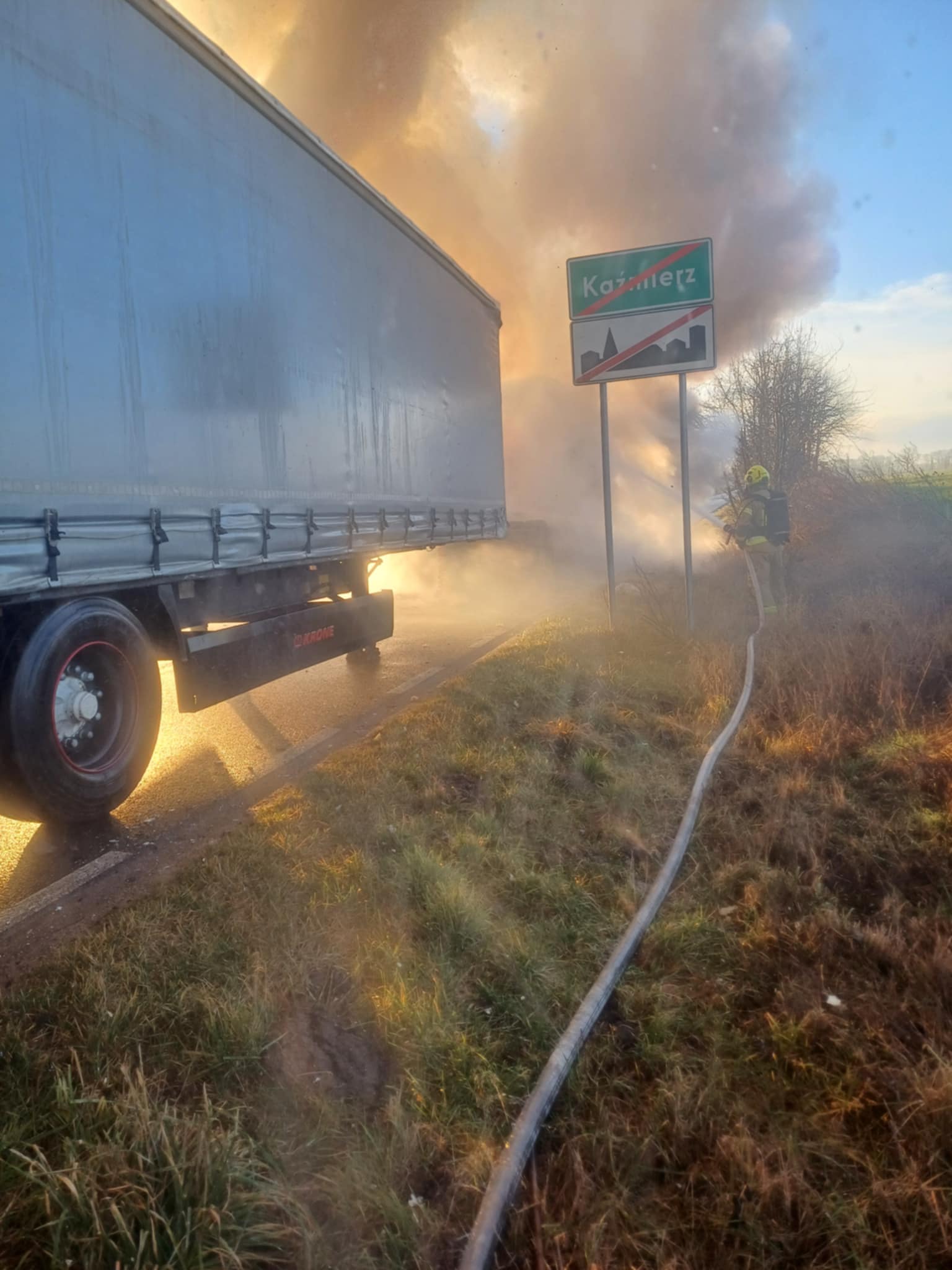 We wtorek, 28 stycznia 2025 roku o godz. 8.12 dyżurny Stanowiska Kierowania Państwowej Straży Pożarnej w Szamotułach odebrał zgłoszenie o pożarze samochodu ciężarowego w miejscowości Kaźmierz na ul. Nowowiejskiej.