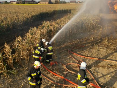 Na miejsce pożaru natychmiast wysłano zastępy straży pożarnej z powiatu Leszczyńskiego, Wolsztyńskiego oraz Kościańskiego. Po dojeździe pierwszych zastępów straży pożarnej na miejsce zastano w pełni rozwinięty pożar stogu balotów słomy, które częściowo znajdowały się również pod wiata. Ogień zagrażał również pobliskiej kukurydzy o powierzchni około 60 hektarów.