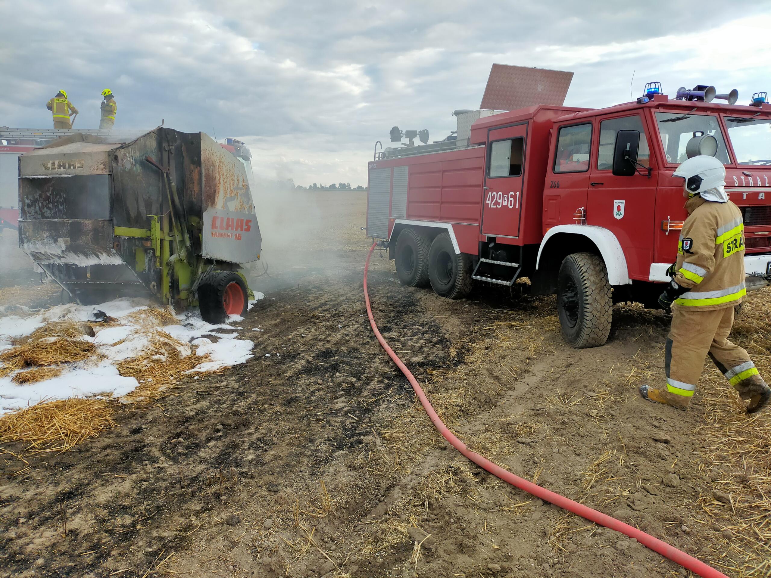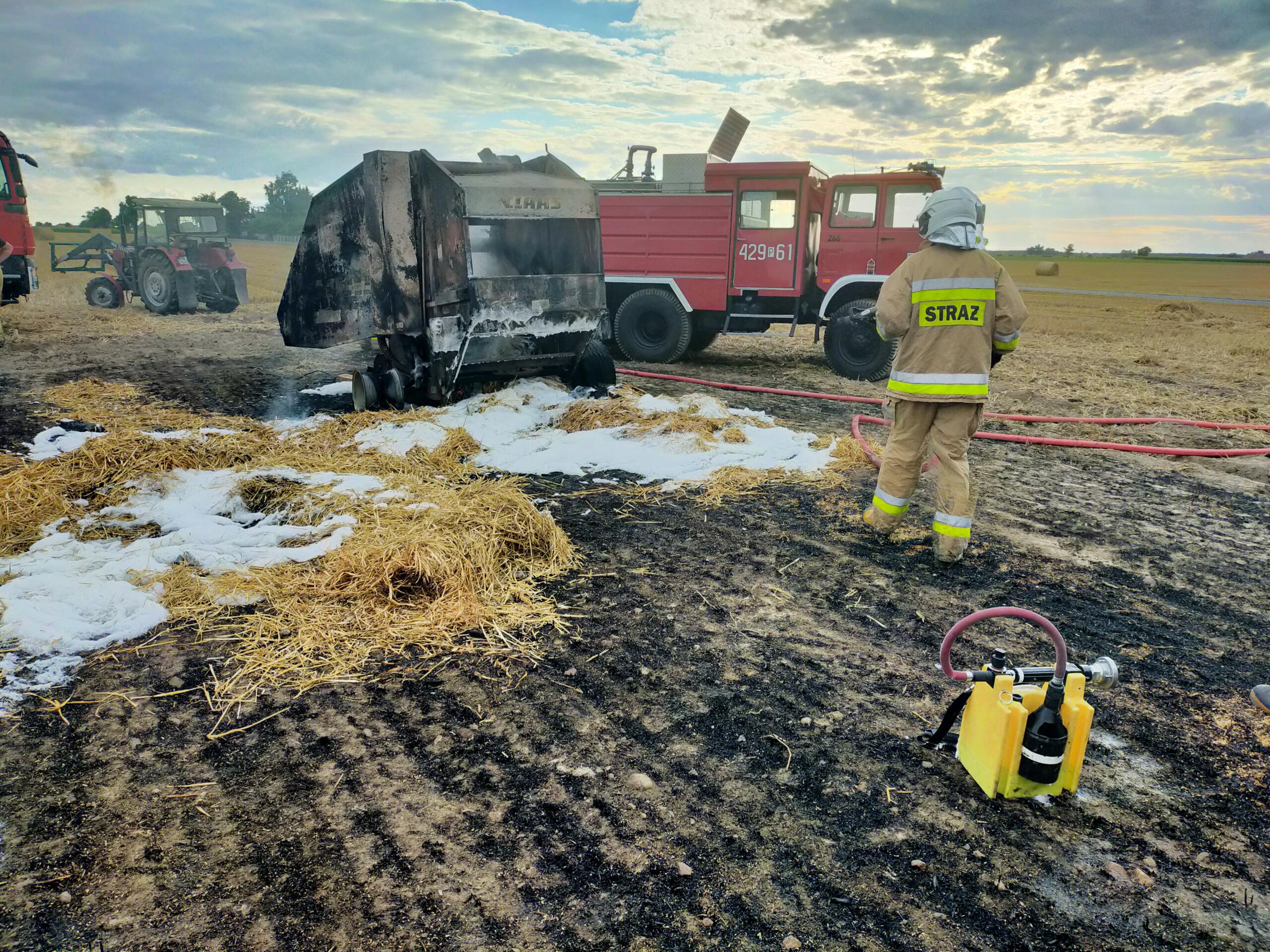 W wyniku pożaru spaleniu uległo prasa rolnicza oraz około 2 ha ścierniska i słomy (część słomy była już sprasowana).