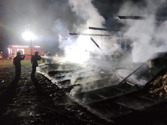 Po przybyciu na miejsce zdarzenia stwierdzono całkowicie objęty pożarem budynek stodoły, w którym znajdowały się maszyny rolnicze. Ponadto pożar obejmował sąsiedni budynek garażu z zaparkowanym w środku samochodem osobowym.