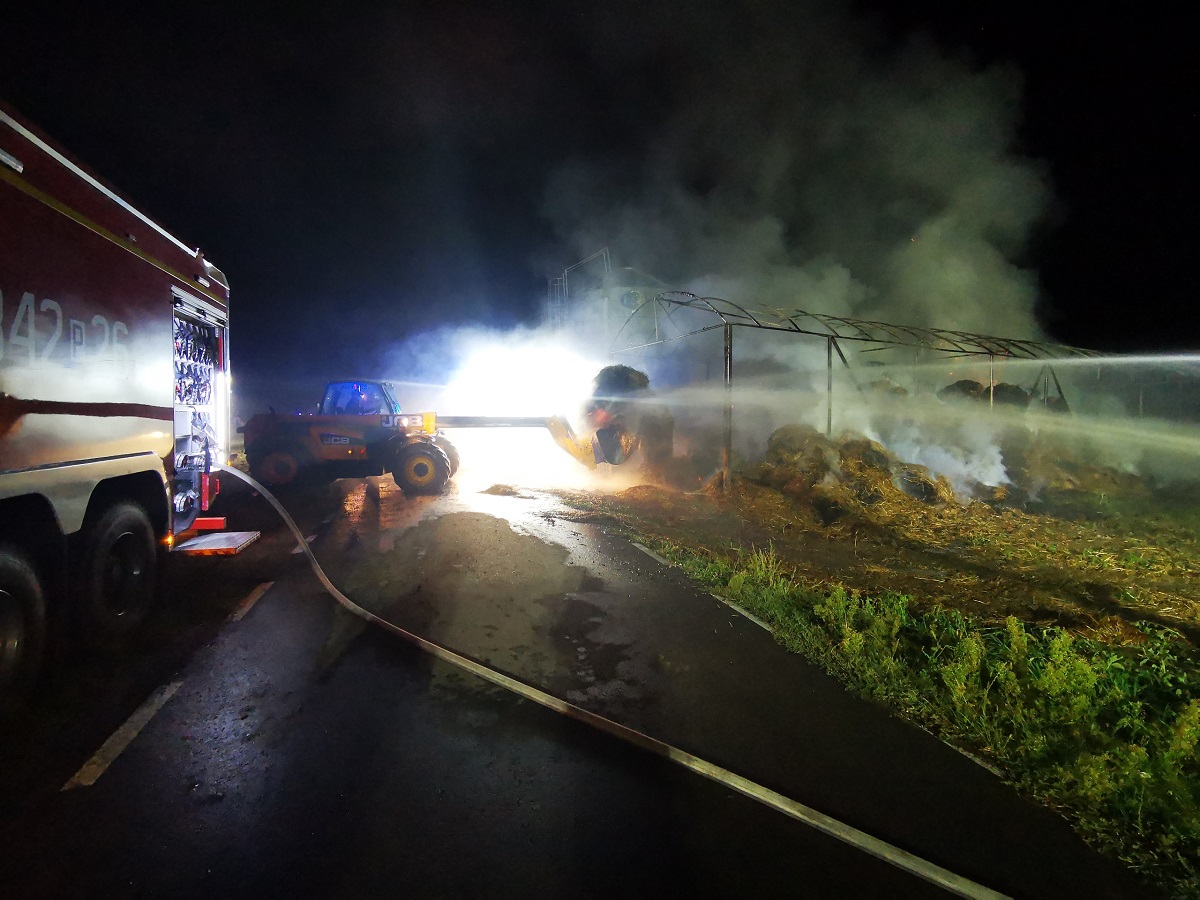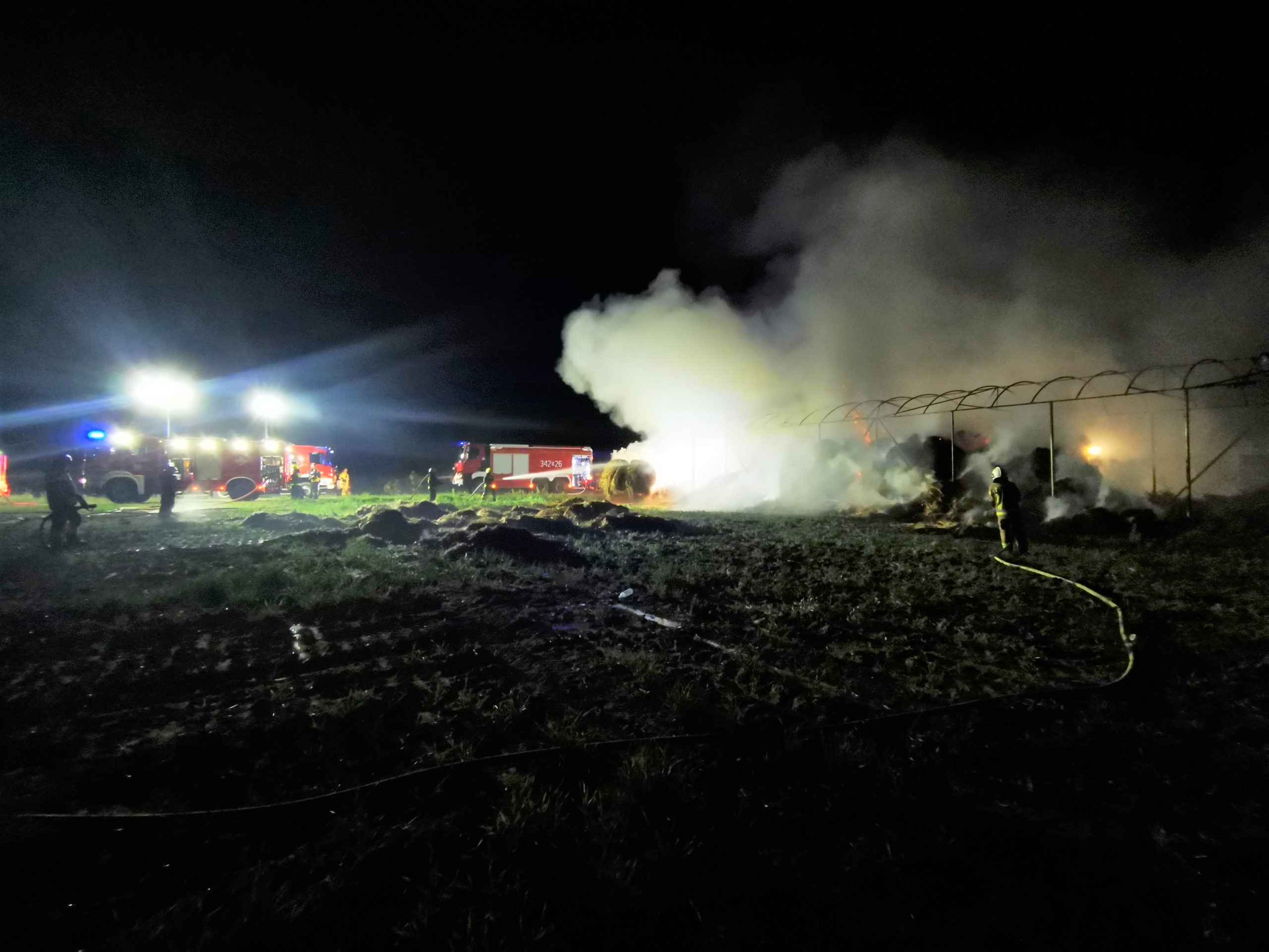 Po zlokalizowaniu pożaru przystąpiono do wywiezienia nadpalonych balotów słomy na pobliskie pole, gdzie ponownie zostały przelane wodą. Pożar ugaszono, działania zakończono.