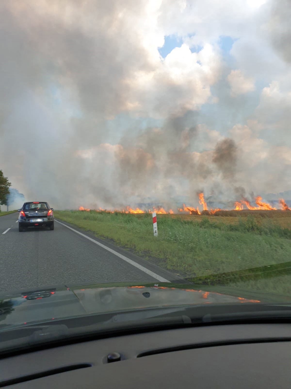 Wysoka temperatura i siła wiatru sprawiły, że pożar bardzo szybko się rozprzestrzeniał i finalnie objął powierzchnię 30 ha pola.