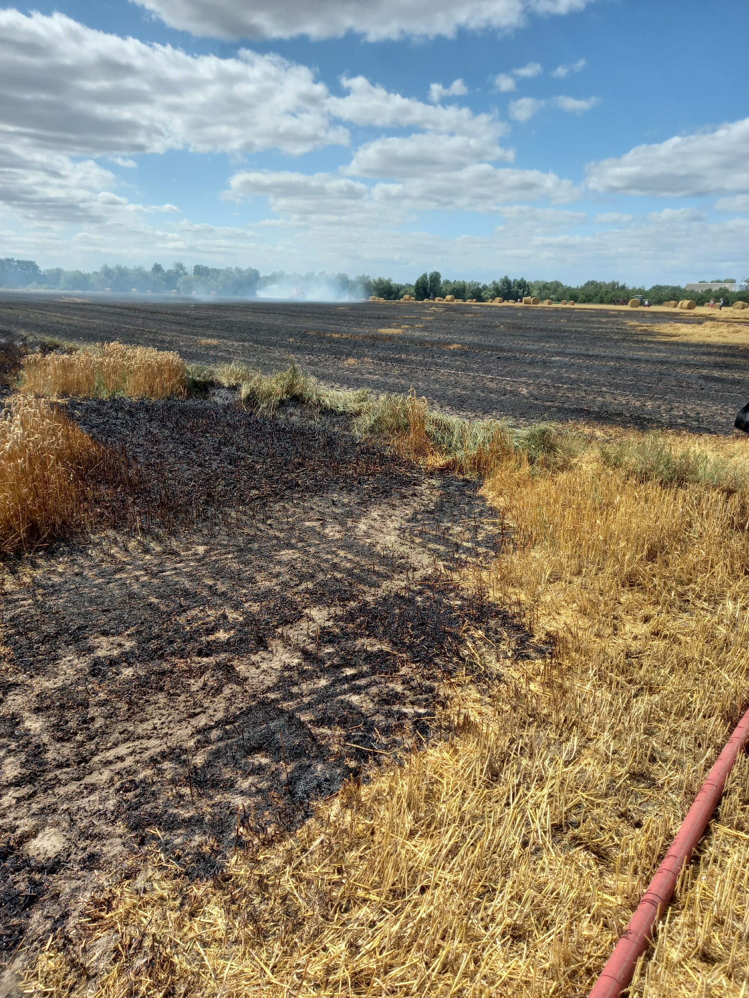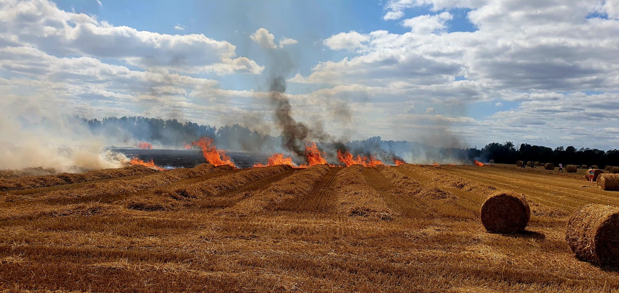 Spaleniu uległo łączenie 6 hektarów ścierniska zboża na pniu i baloty słomy