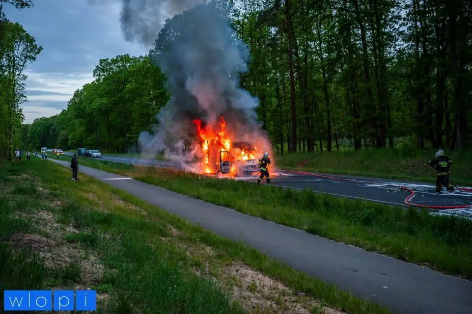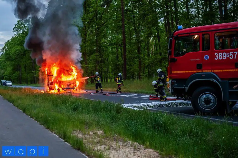18 maja 2020 roku o godzinie 20.32 do leszczyńskiej komendy wpłynęło zgłoszenie pożaru samochodu dostawczego na drodze powiatowej pomiędzy miejscowościami Włoszakowice – Krzyżowiec.