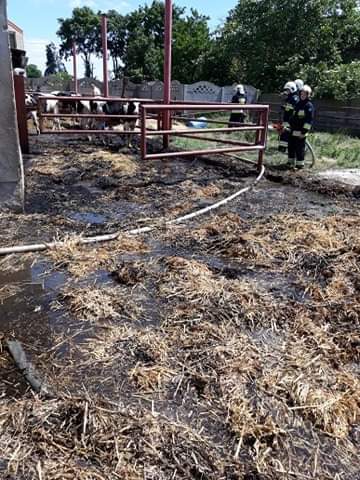 Spaleniu uległy dwa baloty przy budynku gospodarczym. W pobliżuwwybuchu pożaru znajdowały się również zwierzęta. Dzięki szybkiej reakcji udało się szybko opanować pożar, który nieprzedostał się na pobliski budynek.