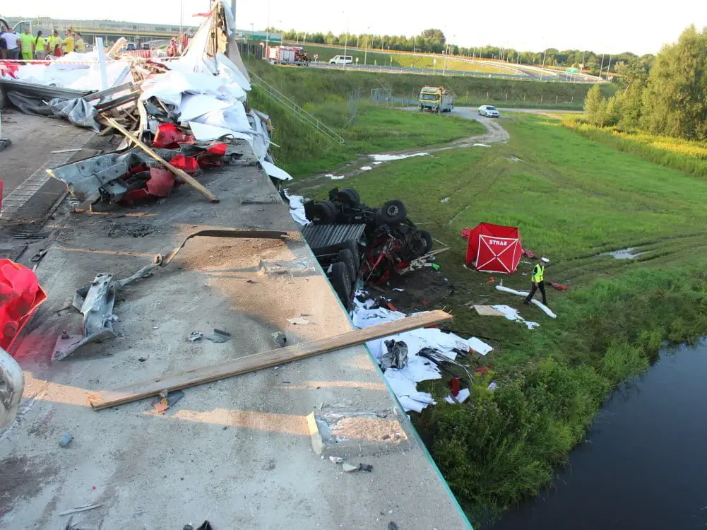Do tragedii doszło kilka minut po 15 na trasie S8 na jezdni w kierunku Wyszkowa (woj. mazowieckie). Kierowca bmw jadąc lewym pasem ruchu uderzył w tył volvo. Po zderzeniu volvo zmienił kierunek jazdy i na prawym pasie ruchu uderzyło w lewe koło ciężarowego volvo. Po uderzeniu w koło ciężarówka zjechał na prawą stronę, uderzył w separatory ruchu, barierki energochłonne i spadła z wiaduktu z wysokości około 8 metrów. Bmw po uderzeniu w volvo najechał na separatory jazdy i tyłem uderzył jeszcze w peugeota.