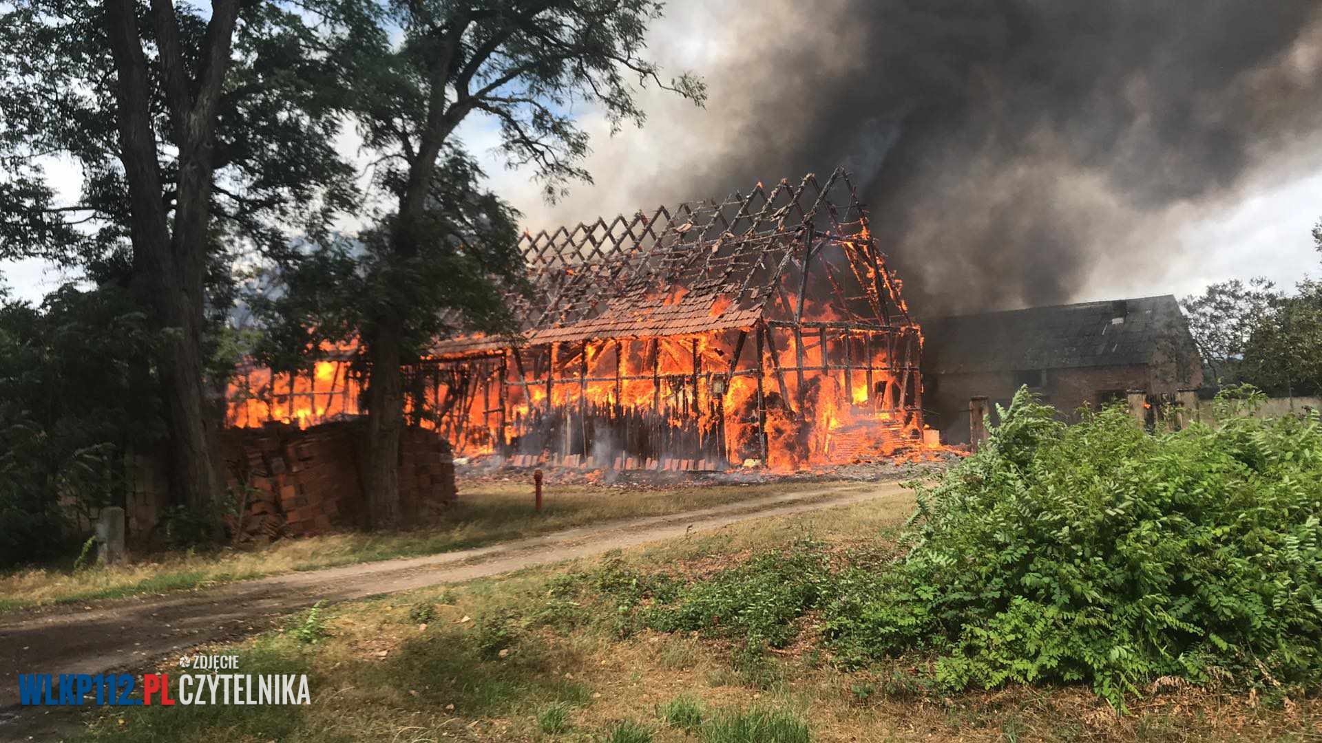 Prawdopodobnie uderzenie pioruna spowodowało pożar stodoły w Sroczewie, która bardzo szybko została w całości objęta pożarem.