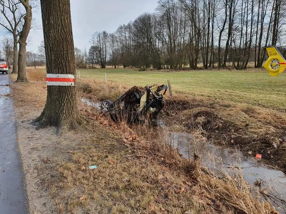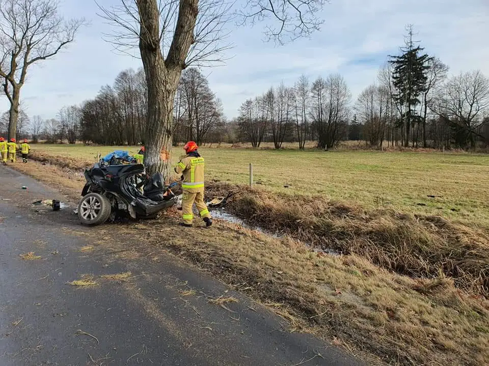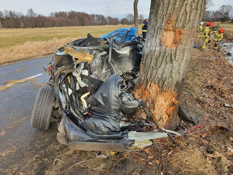 Samochód osobowy marki Mercedes, którym podróżował 31-letni mężczyzna w pewnym momencie prawdopodobnie stracił panowanie nad pojazdem i uderzył bokiem w drzewo. Na skutek ogromnej siły auto rozpadło się na pół.