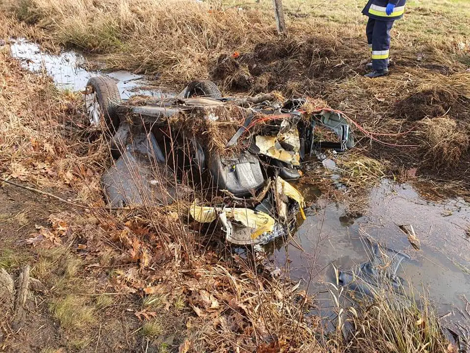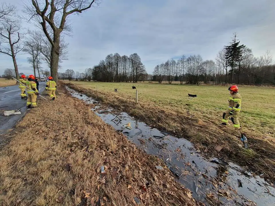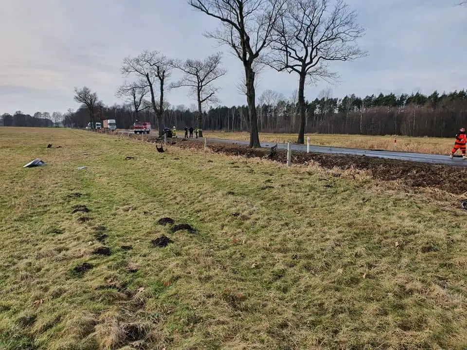 Druga część pojazdu znajdowała się 70 metrów od miejsca uderzenia w drzewo. 31-latek na skutek uderzenia wypadł z pojazdu, gdzie leżał 30 metrów od drugiej części rozerwanego pojazdu.