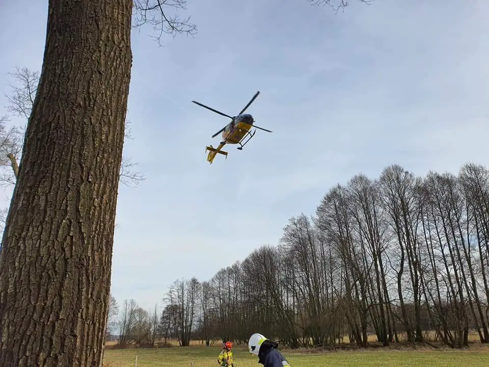 Ranny kierowca drogą lotniczą został przetransportowany do szpitala.