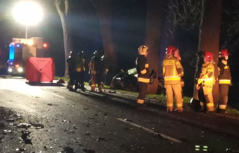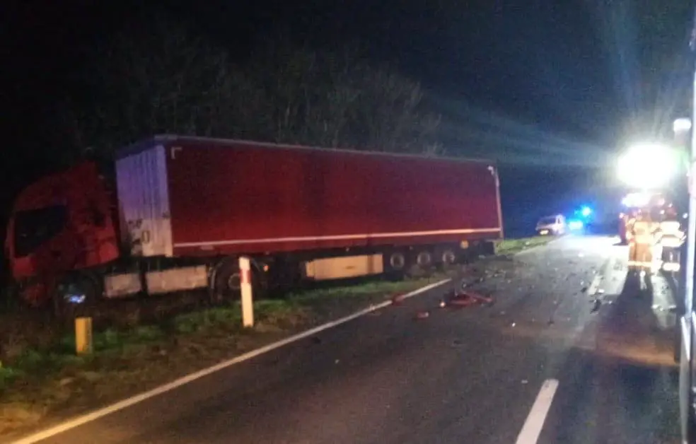 Do tragicznego wypadku doszło koło miejscowości Czarnów. Ford mondeo zderzył się z ciężarówką i uderzył w drzewo.