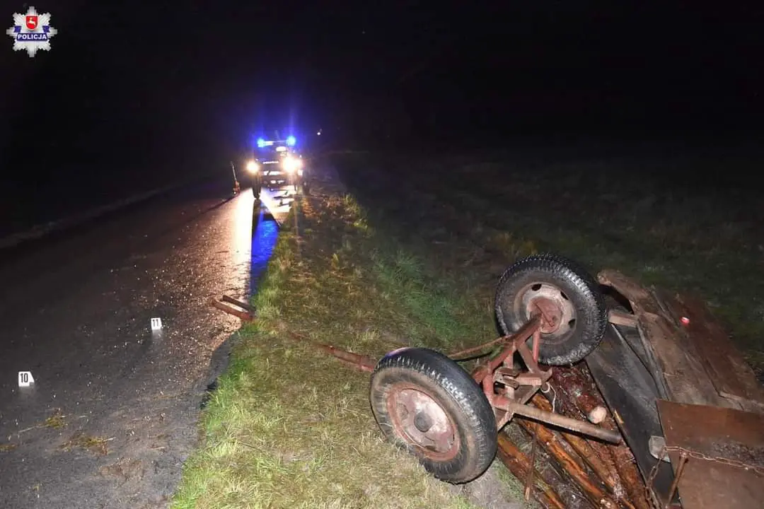 Do śmiertelnego wypadku doszło wczoraj po godzinie 17:00 w Aleksandrowie (powiat biłgorajski). Ze wstępnych ustaleń policjantów pracujących na miejscu zdarzenia wynika, że kierujący ciągnikiem rolniczym Ursus ciągnął wóz z drewnem. Na wozie siedział 49 – letni mężczyzna. W trakcie jazdy wóz rozpiął się i przewrócił przygniatając siedzącego na nim mężczyznę. Na miejscu prowadzona była reanimacja, niestety życia 49 – latka nie dało się uratować i zmarł na miejscu zdarzenia.