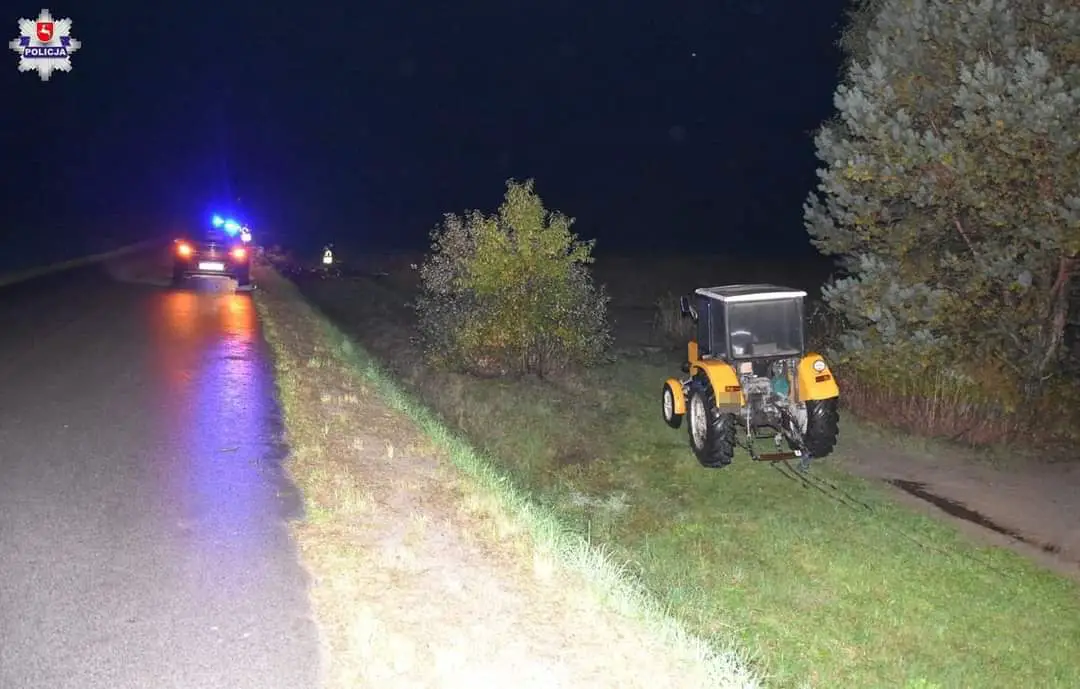 Wczoraj po godzinie 17:00 w Aleksandrowie (powiat biłgorajski) śmierć na miejscu poniósł 49-latek, którego przygniótł wóz z drzewem. Do rozpięcia ciągnika rolniczego i ciągnącego przez niego wozu doszło w trakcie jazdy. Zatrzymaliśmy 43 –latka, podejrzanego o kierowanie ciągnikiem. Miał w organizmie prawie 2 promile alkoholu.