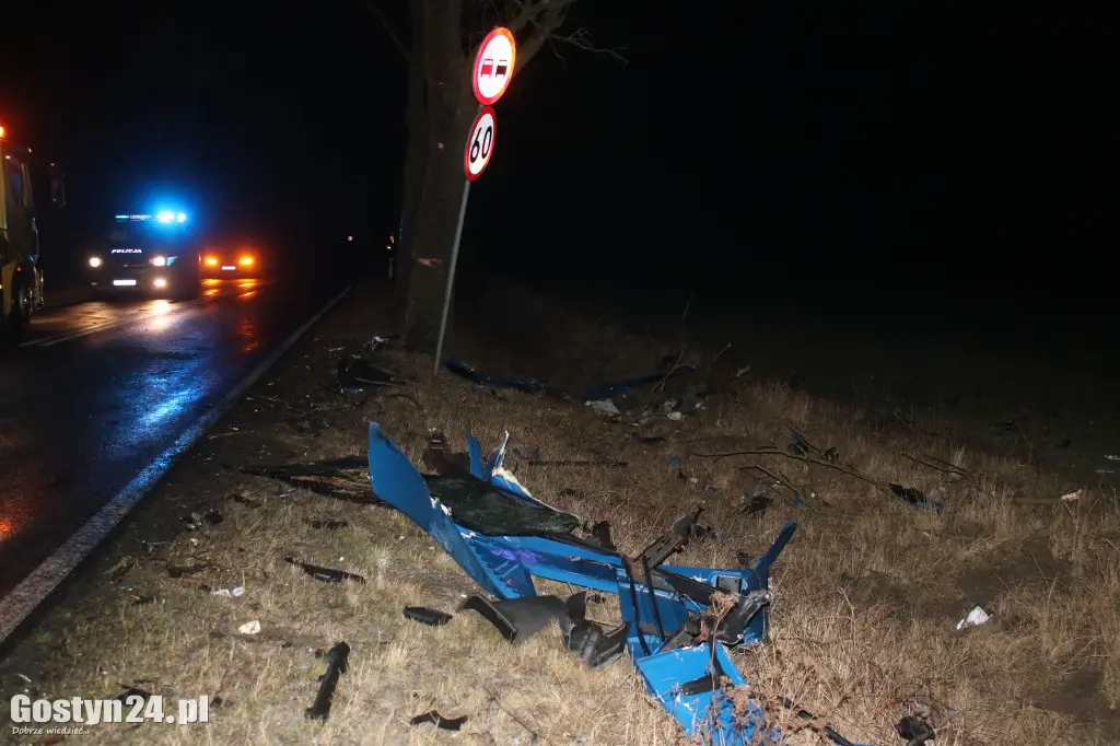 – Na prostym odcinku drogi, na razie z niewyjaśnionych przyczyn, najprawdopodobniej z powodu śliskiej nawierzchni kierowca zjechał na lewą stronę jezdni i uderzył w przydrożne drzewo – mówi sierż. sztab. Katarzyna Ptak z KPP w Gostyniu.