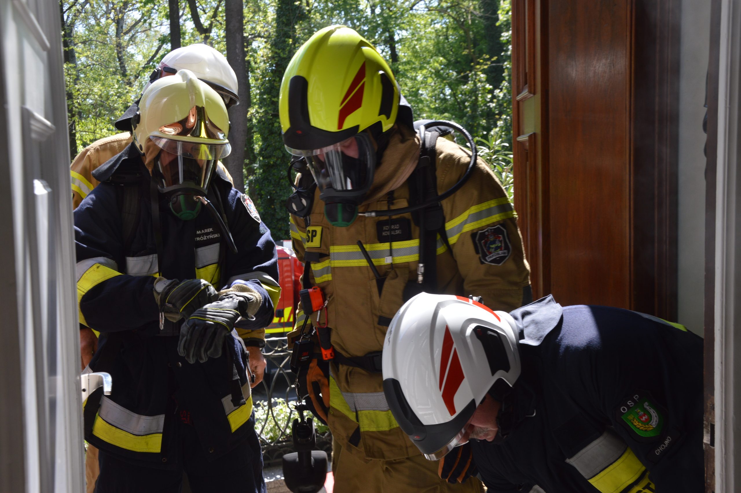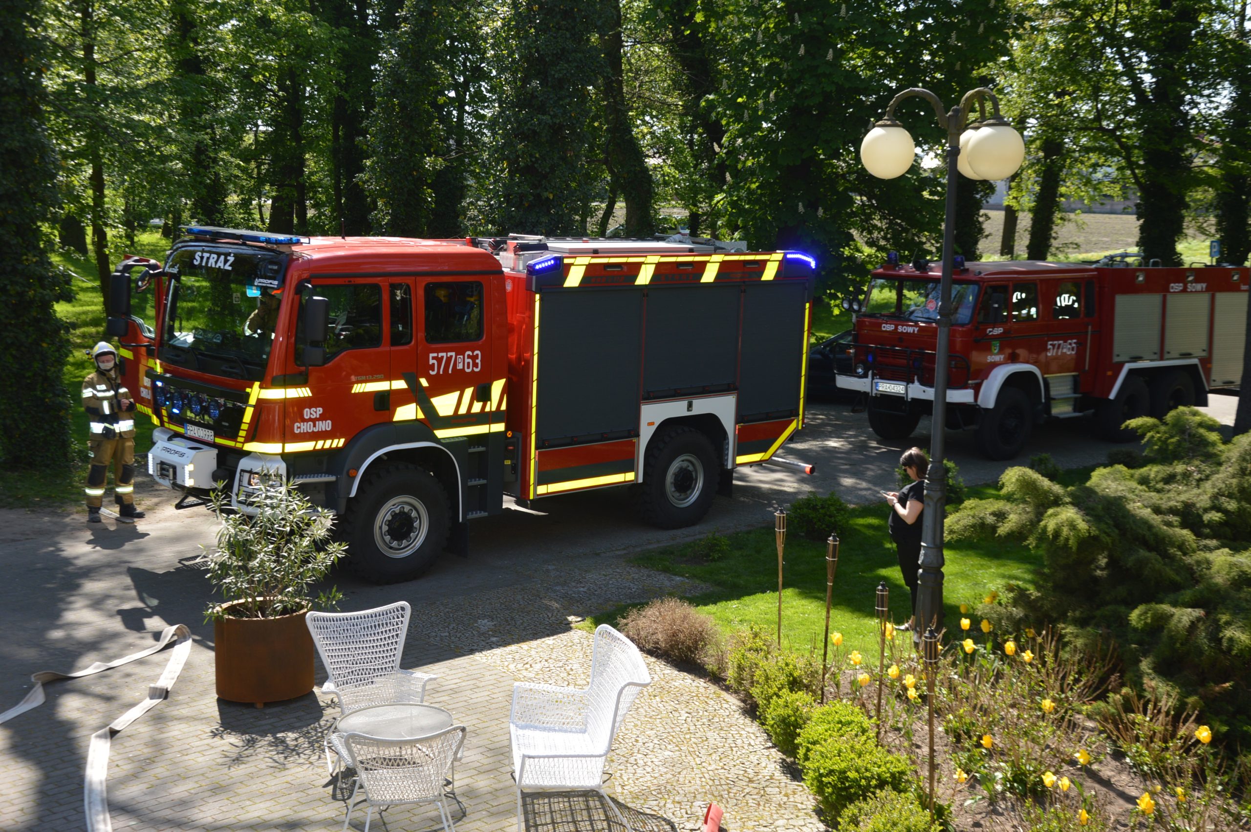 W ćwiczeniach, które odbyły się w piątek 12 maja 2023 r. w pakosławskim pałacu uczestniczyli strażacy z Komendy Powiatowej Państwowej Straży Pożarnej w Rawiczu oraz strażacy – ochotnicy z Chojna, Pakosławia, Sów i Śląskowa.