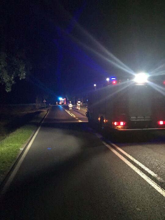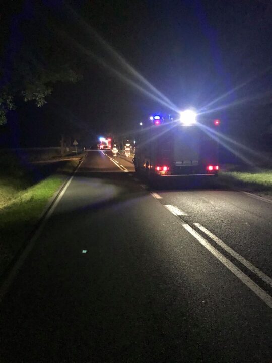 Strażacy z Wolsztyna, Obry oraz Świętna usuwali plamą oleju na drodze wojewódzkiej numer 315 na trasie Niałek Wielki – Obra.