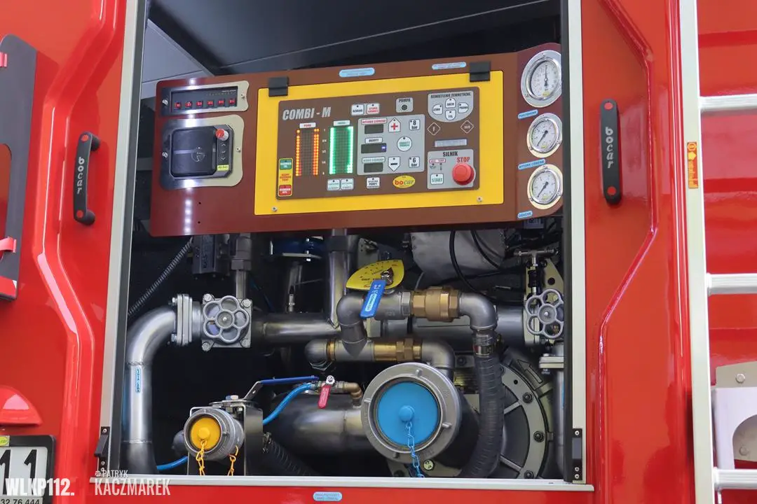 - Układ wodno-pianowy – autopompa dwuzakresowa typ 16/8, 4/40, wydajność 2900l/min przy ciśnieniu 8 bar, dozownik środka pianotwórczego 3%